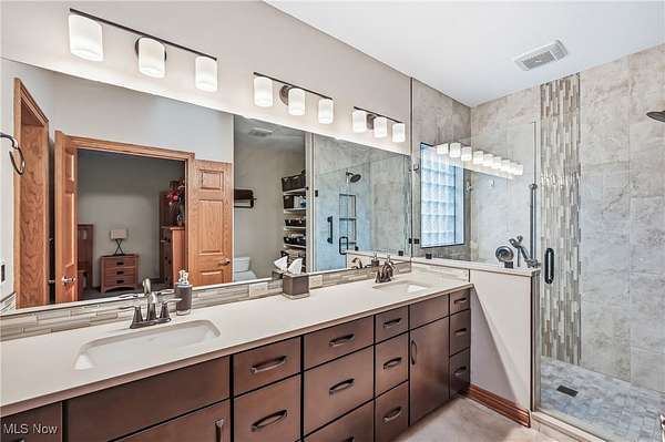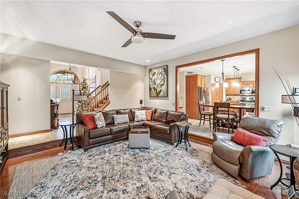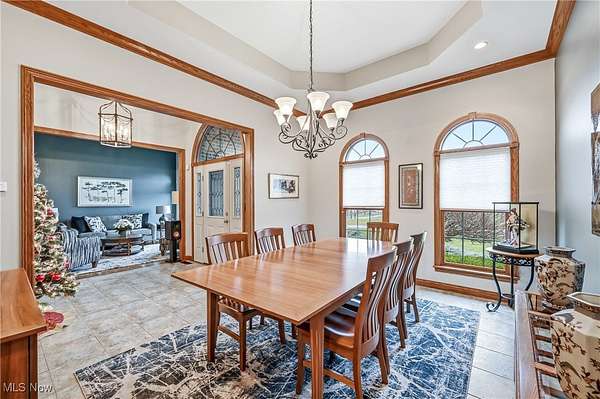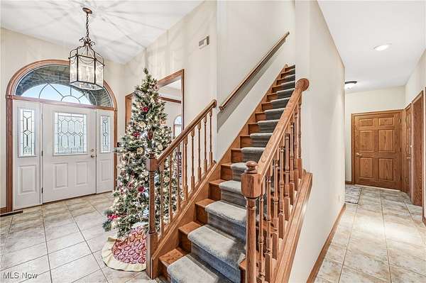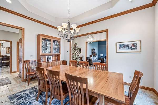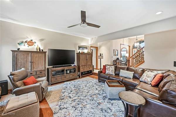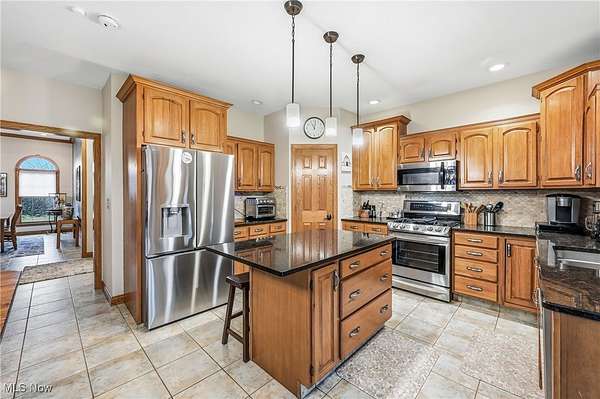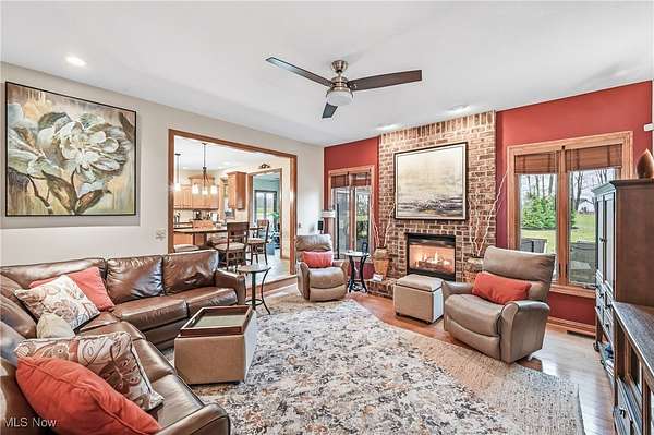 Custom-built home on over 2 acres in the desirable Highlands development! This beautiful property blends timeless craftsmanship with modern comfort, featuring Baird Brothers hardwood flooring, solid oak six-panel doors and trim, hand-selected tile, and granite countertops. Step inside to a warm, inviting entry that opens to a formal dining room and bright living room. The custom kitchen has been thoughtfully updated with granite countertops, backsplash, stainless steel appliances, and an oversized pantry offering abundant cabinet and storage space. A cozy breakfast area and sunroom provide the perfect spots to enjoy your morning coffee while overlooking the lush landscaping, 20'x40' Trex deck, and adjoining patio. The family room flows seamlessly from the kitchen and features vaulted ceilings and a gas fireplace, ideal for entertaining or relaxing. Convenient first-floor laundry adds practicality. The main-level primary suite showcases plush carpeting, tray ceiling, walk-in closet, and a luxurious en-suite bath with Quartz countertops, double sinks, floor-to-ceiling tiled shower, and abundant shelving. Two additional first-floor rooms and a full bath can serve as bedrooms or spacious offices. Upstairs, find two large bedrooms and another full bath-perfect for guests or a growing family. The finished basement offers even more living space with a gas fireplace, tile and carpet flooring, drop ceiling, built-in cabinetry, and a spacious full bath. This home also includes geo-thermal heating and cooling for energy efficiency, Kinetico water softening system, and whole-house vacuum. With a 3-car attached garage plus a 2-car detached garage, there's ample space for vehicles, equipment, and hobbies. Step out from the primary suite to a Jacuzzi 7-person hot tub under a pergola, or relax by the Koi pond and bubbling waterfall. This stunning 5-bedroom, 4-bath home offers the perfect blend of quality, comfort, and style-ready for you and your family to make it your own!