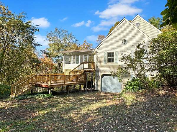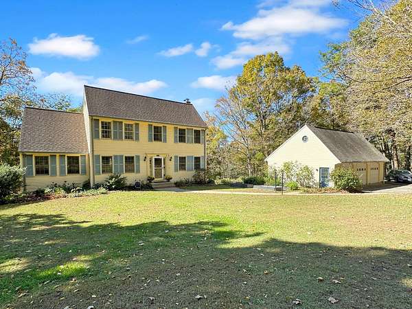 Take a 3D Tour or Enjoy a Video Walkthrough 24/7! Set 550 feet off a quiet road, this spacious Colonial offers 3 Bedrooms, 2.5 Baths, and 2,196 square feet of living space on 7.54 private acres bordered by the Susquetonscut Brook. The home is ready for a Buyer to bring their HGTV vision to life with fresh paint, new carpet, and hardwood floor refinishing. Inside, you'll find generous living spaces, including a 3-seasons Sunroom overlooking the grounds and a Living Room featuring a fireplace with a wood stove insert. The Kitchen opens to a large Dining Area and offers great potential for a modern refresh. The dry walk-out basement provides an opportunity for additional finished space or extra bedrooms. Recent updates include a new boiler (2023), a new deck (2025), and insulation improvements following a home energy audit. The 4-car garage setup includes a 3-car detached garage with walk-up storage and a 1-car garage under the home, accessed from the unfinished walk-out basement. A separate barn offers additional storage or space for animals. Outdoors, enjoy established fruit trees, raised garden beds, strawberries, elderberries, and a peaceful natural setting ideal for gardening or relaxation. This home blends the charm of country living with modern practicality and is a must-see for Buyers seeking space, privacy, and the freedom to make it their own. The home is priced BELOW market valuations (see photo 39) NEXT STEP: Schedule a private showing to see this property firsthand.