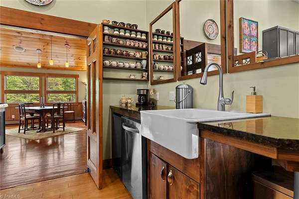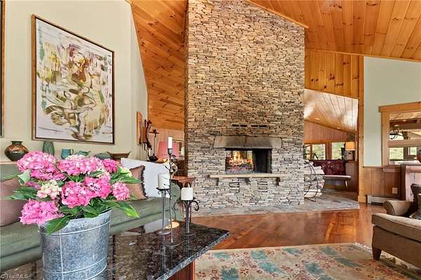 This thoughtfully renovated property is a private residence yet retains the infrastructure to transition back to hospitality or commercial uses. The dining and great room are anchored by a double-sided stacked stone wood-burning fireplace. The upper level offers 4 BR and 5.5 BA, along with a pantry and laundry. A retained commercial kitchen-complete with gas and electric ranges, dual dishwashers, and triple sinks. The lower level has two separate apartments-each w/2 BR 1 BA, one with a kitchen. Also a laundry area, ample storage, and an oversized two-car garage. Outdoor has a firepit, built-in smoker, fireplace, wood-fired pizza oven, and grill. Three cabins each w/gas fireplace, garden tub, private bath, and mini fridge. Whether envisioned as a boutique bed and breakfast, Airbnb compound, wellness retreat, equestrian property, or private estate, this one-of-a-kind offering invites you to create something special in the Blue Ridge Mountains.