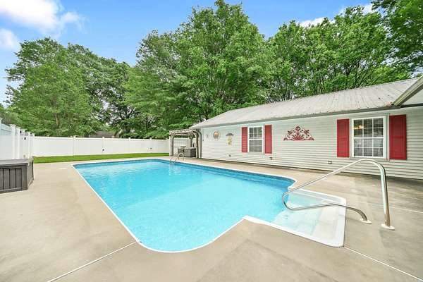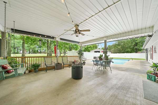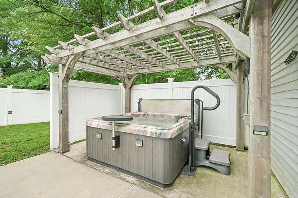 - Covered Patio, Hot Tub/Spa, Inground Pool, Outside Storage Area, Partially Fenced, Wood Fence