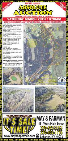 We are having an ABSOLUTE AUCTION of 94.5 acres m/l in tracts Saturday March 28th at 10:30am. This will be a live on-site auction. 94.5 acres of wooded paradise with several tracts adjoining a large creek. HUNTERS PARADISE - WOODED HOME SITES - OPEN TRACTS. Tract #1 - 20.6 acres m/l of woodland and some open land with frontage on Hwy 527 and joins a large creek. Tract #2 - 18.4 acres m/l of wooded hunting - recreation land with trails and joins a large creek. Tract #3 - 18.2 acres m/l or open cropland and woods with a nice pond. Tract #4 - 7.5 acres m/l of woods with nice home site. Tract #5 - 16.5 acres m/l of open land with greenhouse and barn with woods. Tracts #6,7,8 are wooded tracts ranging from 3.2 to 3.8 acres m/l each. Tracts #9 & 10 are 1.5 acres m/l each wooded building lots. Call or text Monty for more information.