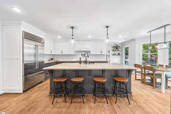Properties like this don’t come along often—Privacy this close to Hartness is a find; 110 Oak Creek turns it into a lifestyle. This home has been thoughtfully refreshed with recent updates and upgrades, including a remodeled kitchen, beautifully updated bathrooms, and a bright sunroom addition that extends your living space and blurs the line between indoors and out. Every improvement was made with comfort and livability in mind, giving this home a fresh, inviting feel from the moment you step inside. The flexible floor plan balances function and comfort. A main-level bedroom with ensuite bath provides convenience for guests or multi-generational living, while all other bedrooms—including the spacious primary suite—are tucked upstairs for privacy. The luxurious, remodeled kitchen is equipped with Sub-Zero and Wolf appliances, combining style and performance at the highest level. Designed for both elegance and practicality, it’s anchored by a walk-in pantry with double barn doors and dedicated walnut countertop space to keep small appliances neatly tucked away. From the sunroom, step out onto a covered porch that’s perfect for morning coffee, evening wind-downs, or entertaining with a view of your wooded backdrop. Just beyond, the expansive, newly-built deck—crafted from sustainably sourced black locust and cedar—extends your living space into a private outdoor sanctuary overlooking the rear yard. The property itself is a showstopper: 2.5 private acres that invite gardening with raised beds, play, or simply soaking up the tranquility of your own slice of Greenville. And don’t forget your four-legged family members—this is truly a fur-baby’s dream home with a dedicated pet wash room that makes muddy paws and post-adventure clean-ups effortless. Honestly, your pup might think they picked this house—and maybe they did. At 110 Oak Creek, you’ll find the lifestyle of Hartness right next door, the serenity of private acreage, and a home that blends charm, thoughtful updates, and everyday livability into one rare opportunity. Contact Rhett @ 864-915-9393.