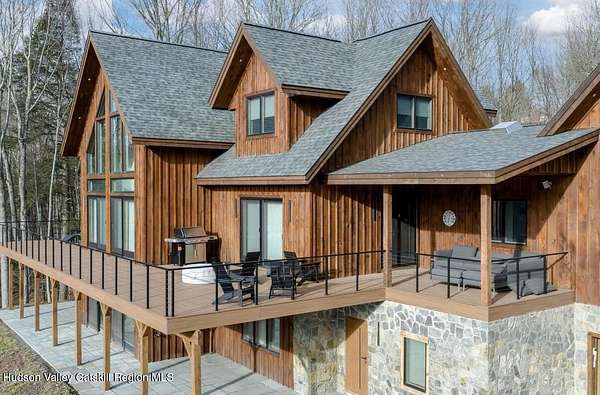 Luxury Mountain Retreat | 7 Bed - 5.5 Bath - 5 Acres | Direct Windham Mountain Views | Smart Home | No HOA. Experience luxury mountain living in this brand-new custom-built 7-bedroom, 5.5-bath chalet with unobstructed views of Windham Mountain Club, set on 5 private acres just minutes from downtown Windham, NY. Designed with impeccable European craftsmanship, high-end technology, and sophisticated mountain style, this home is ideal as a primary residence, ski retreat, or luxury vacation rental. Sophisticated Interior Design- Step inside to discover an open-concept layout with soaring ceilings, panoramic windows, and a grand great room framed by the mountain landscape. The imported German kitchen and bar feature a hidden pantry, Porcelanosa counters and tile, a massive island, double dishwashers, and a professional Viking 8-burner range-a dream for chefs and entertainers. Throughout the home, every detail reflects artisan precision: handmade white oak floors and stair treads from Vermont, custom European doors from Poland (including a front door valued over 13K), and large-format Porcelanosa tile that creates a spa-like atmosphere. Four en-suite bedrooms, including a private guest suite, provide comfort and privacy. Two laundry rooms-one on each floor for added convenience. The floating glass staircase, open loft, and vaulted living spaces embody modern mountain luxury. Smart Home & Comfort Features- This home integrates advanced smart technology and everyday essentials for a seamless lifestyle: Sonos whole-home audio system, Ring cameras, & ADT security. MyQ Smart Garage controls smart thermostats & water control system. Radiant floor heating throughout and a whole-house generator for peace of mind. Two garages for vehicles, gear, and extra storage. Outdoor Living- Enjoy true mountain living on the Trex wraparound deck with a covered outdoor lounge, perfect for sunrise coffee, sunset dinners, or relaxing after a day on the slopes. The inviting front porch provides additional space to take in the crisp Catskill Mountain air and spectacular views year-round. Prime Catskills Location- Located in Windham, New York, one of the Catskills' most sought-after destinations, this property offers easy access to Windham Mountain Club for skiing, golf, hiking, mountain biking, and year-round recreation. The vibrant Windham village nearby offers boutique shopping, fine dining, and small-town charm- all just 2.5 hours from NYC. Investment Opportunity- Currently used as the owner's personal second home and a successful part-time luxury vacation rental, this property presents excellent income potential for buyers seeking a turn-key investment in the Catskills. Its combination of location, design, and amenities appeals to both high-end vacationers and full-time residents. Key Features Overview: 7 Bedrooms | 5.5 Baths | 5 Private Acres | No HOA -Direct Windham Mountain Club views -Imported German kitchen & Porcelanosa finishes -Handmade Vermont white oak floors & Polish doors- Four en-suites + two laundry rooms- Viking 8-burner range & double dishwashers- Radiant heating & whole-house generator- Full smart home system: Ring, Sonos, ADT, Garage, Thermostats, & Water control - Trex wraparound deck with covered lounge Two garages & ample storage space. This is a rare opportunity to own one of Windham's most striking new luxury homes, offering breathtaking views, modern elegance, and exceptional comfort year-round. Whether you're seeking a vacation home in the Catskills, a smart mountain estate, or an investment property near Windham Mountain, this home captures everything there is to love about upstate New York living at its finest. Windham, NY - The Catskills' premier destination for luxury ski homes and mountain retreats. A 3D Walkthrough Tour is available in the digital Lookbook or by request.