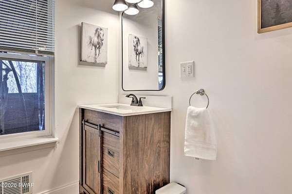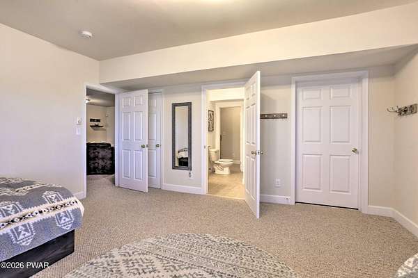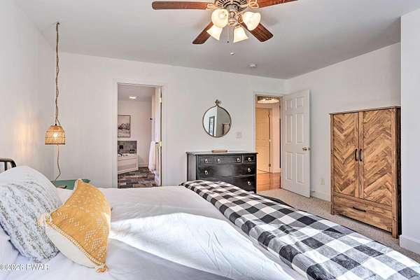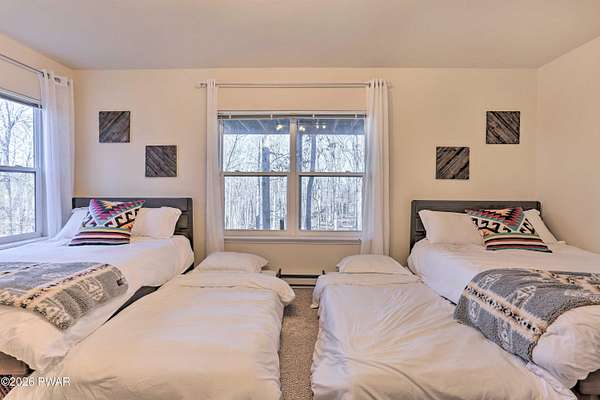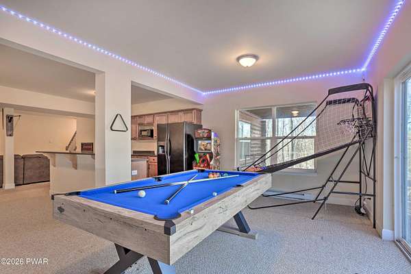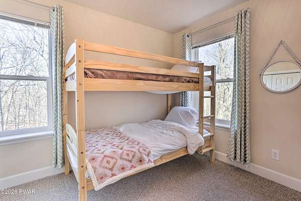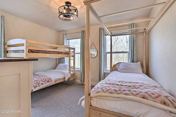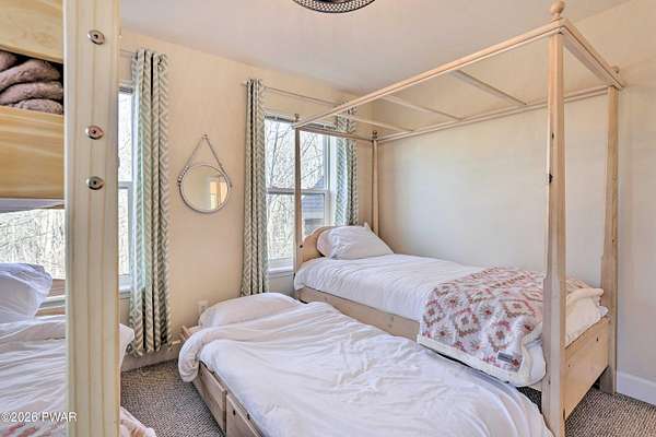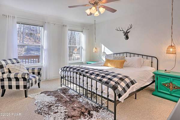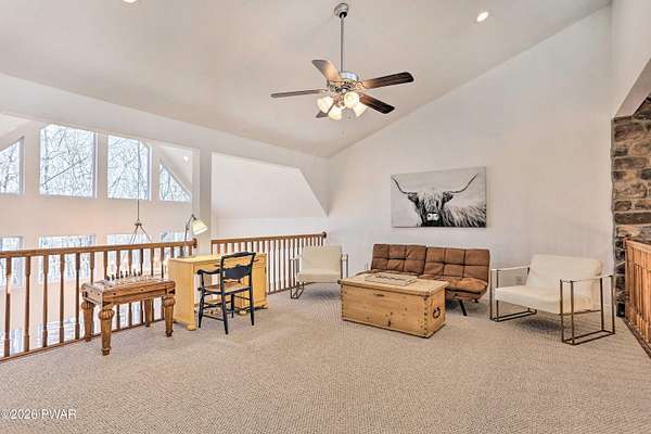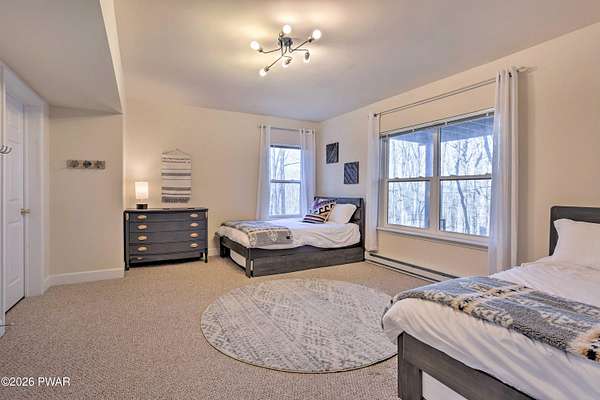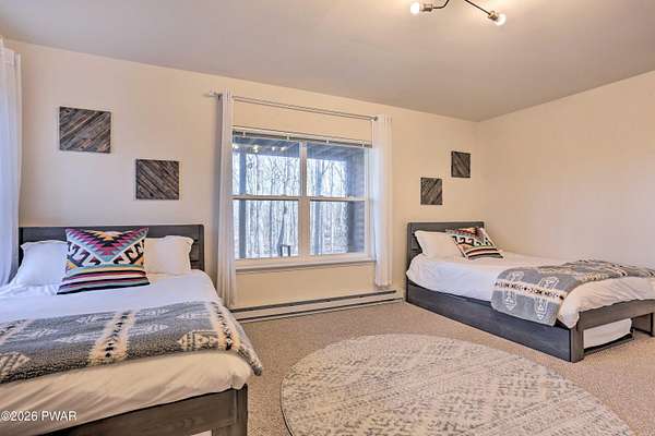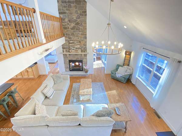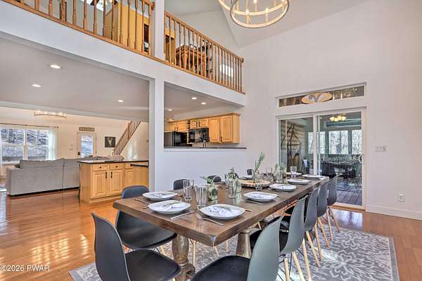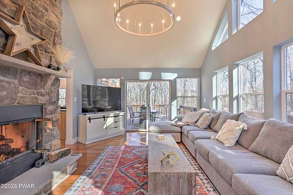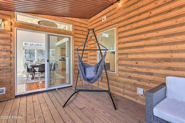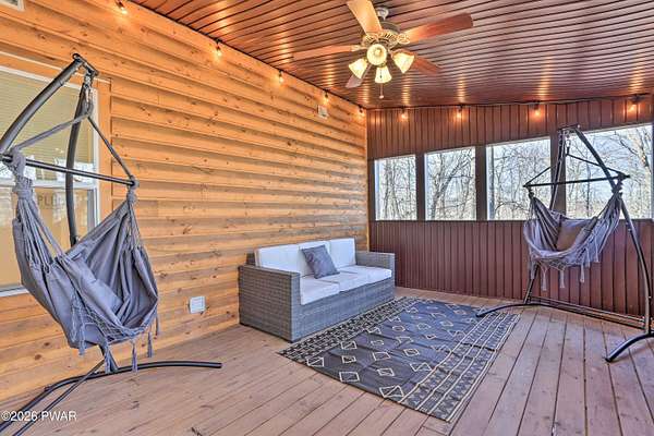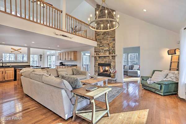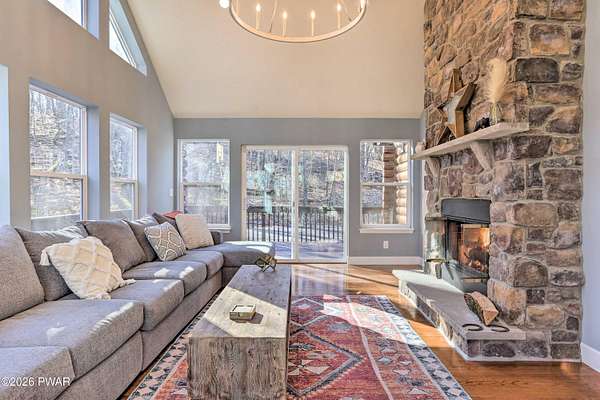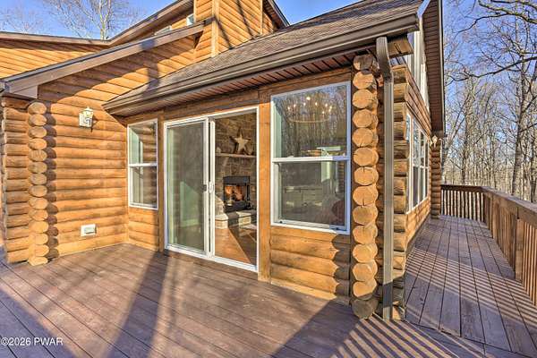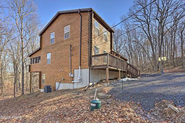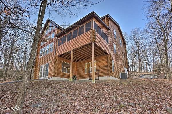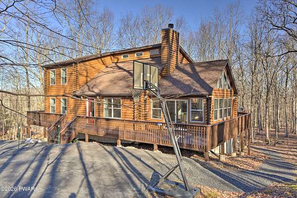 Rare opportunity to own a secluded home in the area's premier community of Masthope Mountain. Home is situated on 2.31 acres, featuring numerous upgrades. Whether you're seeking a primary residence, a second home, or an income-producing property, this home offers flexibility, quality, and readiness for immediate enjoyment. Currently approved for short-term rental. The new owner will need to reapply; however, the transition will be seamless. This well-maintained and thoughtfully upgraded home offers exceptional versatility, having been enjoyed as a family weekend retreat, and a successful short-term rental. Truly turnkey, the current owners manage bookings themselves and have an established team in place including a professional cleaning service, routine property check service, and reliable local contractors for maintenance and repairs. Recent improvements and upgrades include a new boiler, double-sided fireplace, argon gas system, and an upgraded electrical panel (2023). Additional features include a gas line to the grill and fireplace, outdoor fire pit cove, driveway improvements, and enhanced property drainage, all contributing to efficiency, ensuring comfort, convenience, and peace of mind for the next owner.Experience spectacular privacy at this stunning 5-bedroom, 4-bath log-sided home located in the full-amenity community of Masthope Mountain. Step inside to a spacious open-concept kitchen, living, and dining area filled with natural light and highlighted by soaring vaulted ceilings.The oversized sunroom offers breathtaking panoramic views of the surrounding forest and features a beautiful see-through stone fireplace that also enhances the living space. A screened porch provides the perfect spot to relax and enjoy the peaceful outdoor setting. The finished lower level is designed for entertaining, complete with a wet bar, two additional bedrooms, and generous gathering space--making it ideal for hosting family and friends.