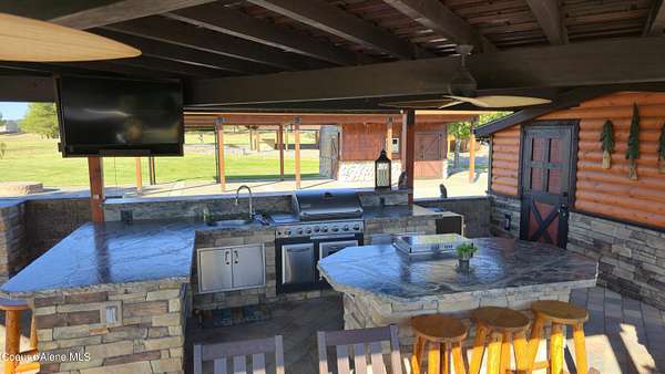 Prime Property - Front Row! ''Class A Only'' Motorcoach Property Facing the 5th Hole of the Stoneridge Golf Course. Many New Upgrades in 2023/24, Including Redesigned Landscape w/New Irrigation and New Frost Free Hydrants, Remodeled & Expanded Coach House w/New Appliances, Alder Cabinets w/Custom Granite Counter & Backsplash, LVP Flooring, Walk-in Shower, Barn Door, On Demand Hot Water Heater, & Murphy Cabinet Bed. The Large Covered Pergola Has a Full Metal Roof, Three Ceiling Fans, Remote Controlled Awnings & Shades, & New Custom Designed Wrought Iron Gates. There Are Two Large Granite Islands w/BBQ & Burner, Cozy Fireplace, New Composite Furniture (Dining table w/6 chairs, sofa, side chairs, end tables) TV