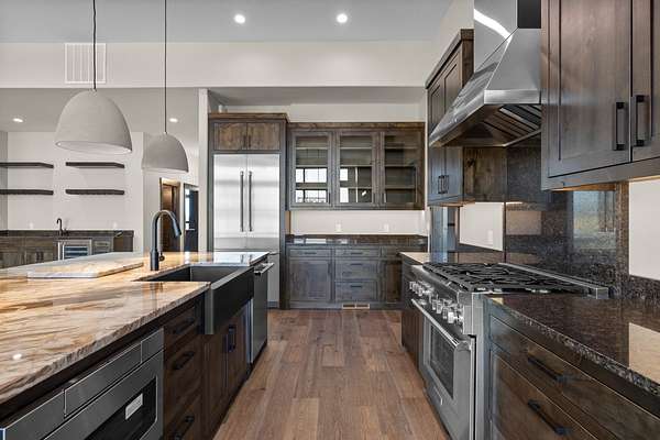 Welcome to The Ranch at Eureka, an exclusive gated community perfectly situated for outdoor enthusiasts! As you wind your way up the long driveway, you'll discover your stunning new custom home, crafted with high-end finishes and carefully selected fixtures. This residence features a gourmet kitchen and a wet bar, perfect for entertaining guests. The tall ceilings throughout the home highlight its luxurious and elegant design. The primary bedroom boasts a custom tray ceiling, while the master bath offers a soothing spa-like retreat. The living room showcases a striking floor-to-ceiling rock fireplace, and every bedroom is equipped with large picture windows to capture the breathtaking 360-degree views of the property. Outside, you'll find an impressive 30 by 50 shop for all your toys.