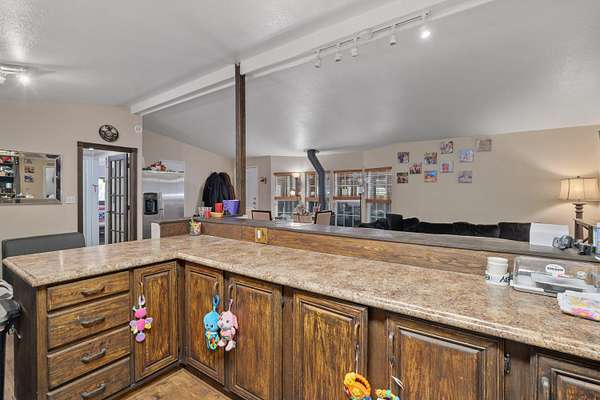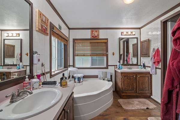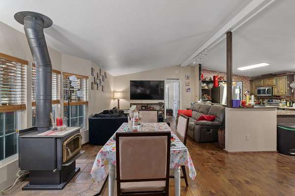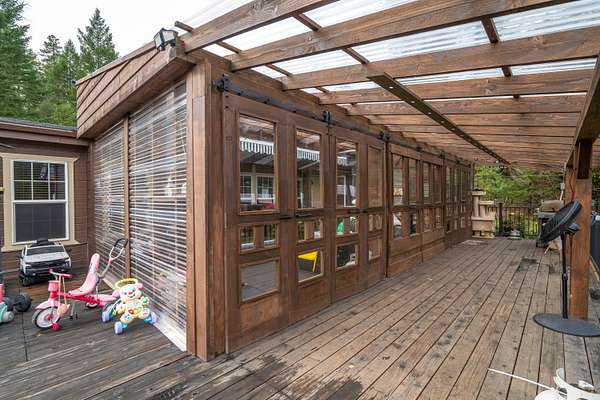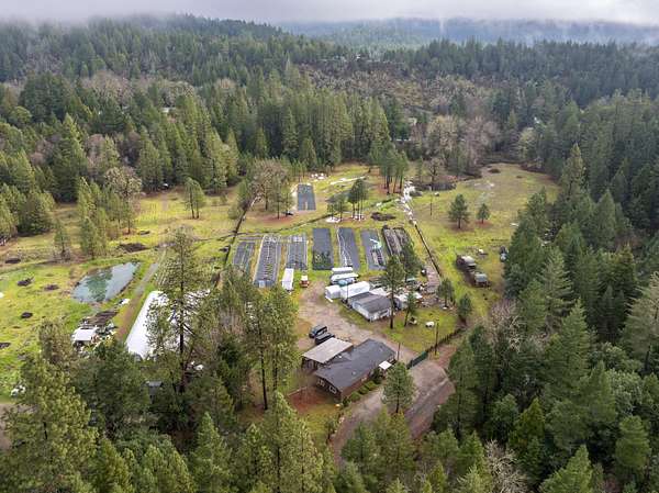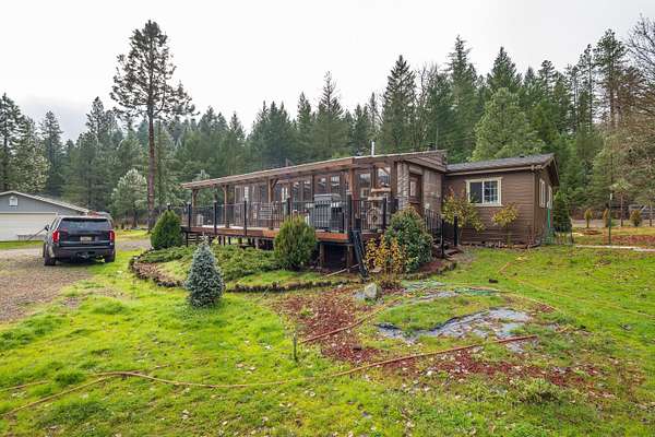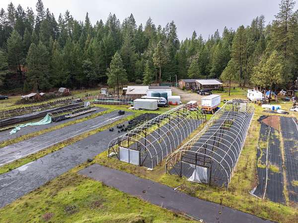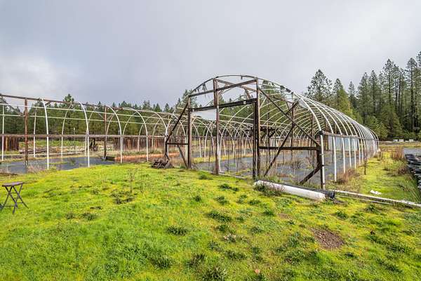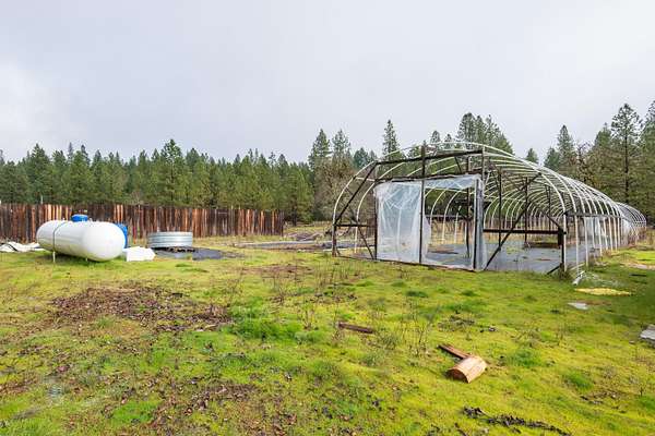 Nicely updated manufactured home on 4.5 acres with excellent functionality and room to grow. Recent improvements include new laminate flooring throughout, fresh interior paint, a new stove, dishwasher, two new refrigerators, a certified wood stove, and a new water heater. The spacious kitchen opens to the dining and living areas, creating a comfortable, open living space. Beautiful master suite with dual sinks and walk-in closet. An enclosed deck extends the living space for year-round enjoyment. The detached garage is fully set up for starting and growing vegetables, making it ideal for those looking to garden, grow seedlings, or operate a small-scale agricultural setup. Two large permitted greenhouses-approximately 100x24 and 80x24-are in place and ready for future use as well as 2 5,000 gallon holding tanks. Additional features include RV parking with full hookups, ample space for equipment or toys, and usable acreage perfect for a variety of rural lifestyle needs