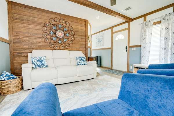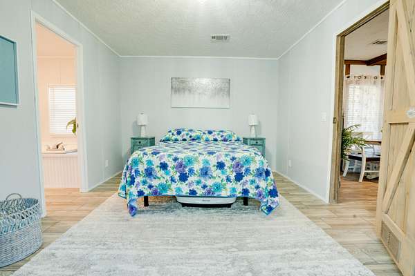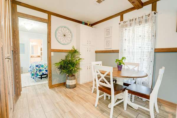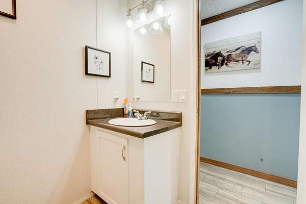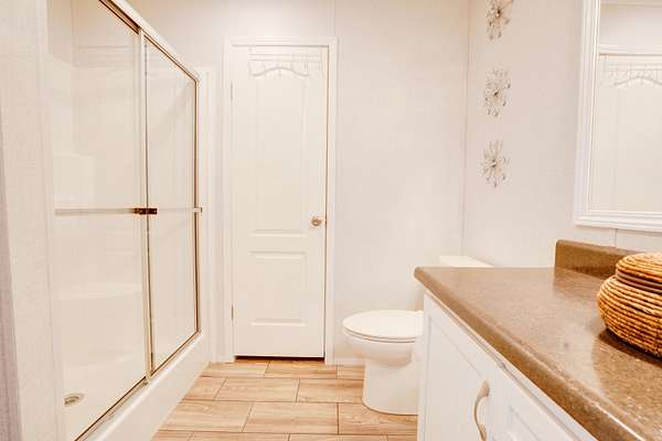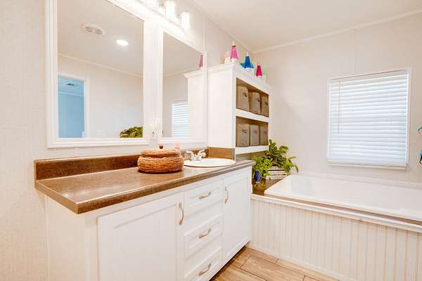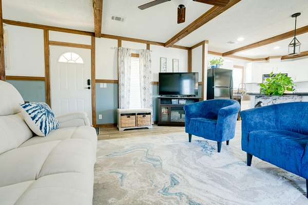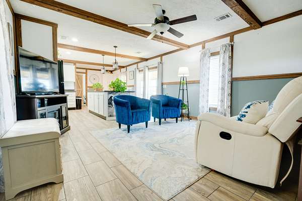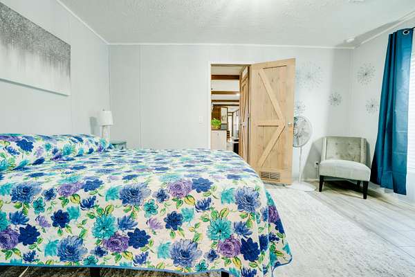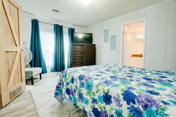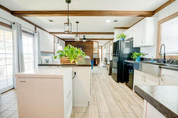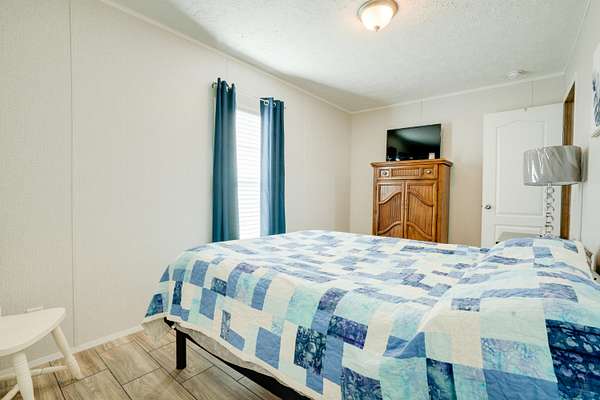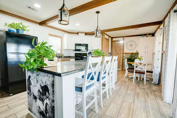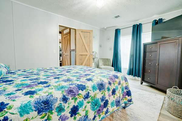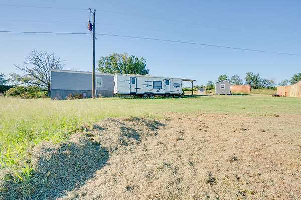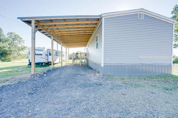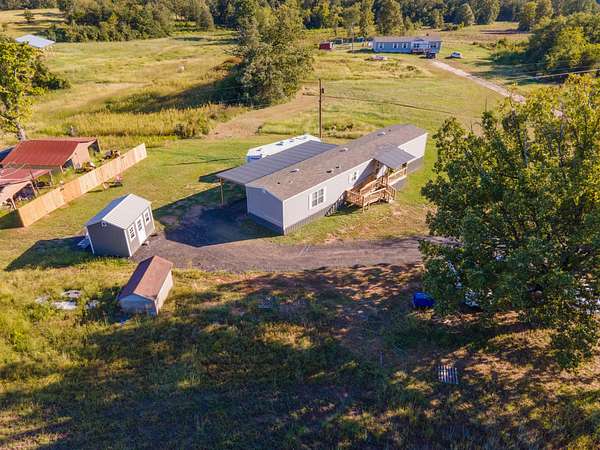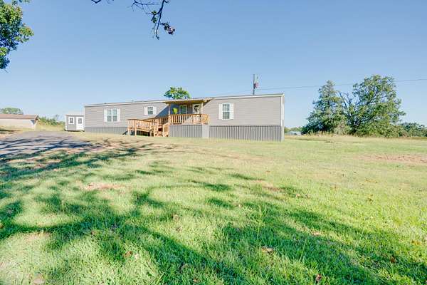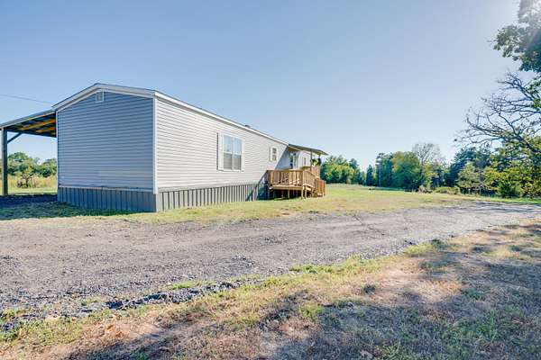 Escape to this 2021 modern mobile home with a permanent foundation, perfectly secluded on 8+/- acres in the natural beauty of Arkansas. Enjoy the privacy of a storage building, a newly constructed front porch, and a spacious back deck with a large cover for convenient car parking. RV enthusiasts will delight in the hookup with water and electric amenities. Step inside to discover a captivating interior, highlighted by a beautiful large kitchen island, an inviting eat-in kitchen, and a master bedroom boasting a walk-in closet, whirlpool tub, and walk-in shower. The practicality extends to a sizable laundry room, accompanied by two additional bedrooms and a well-appointed guest bath. This 1200sqft home is the epitome of comfort and convenience, offering everything you desire in a picturesque Arkansas setting!