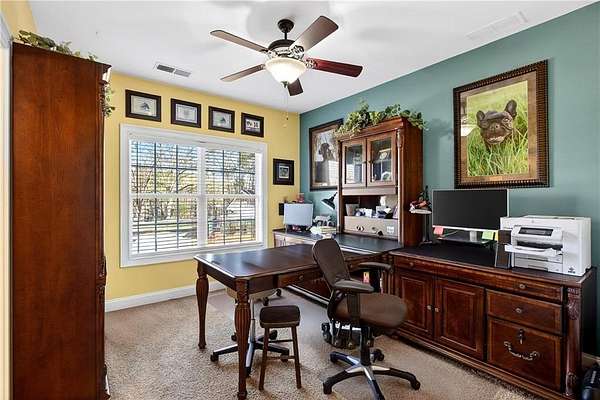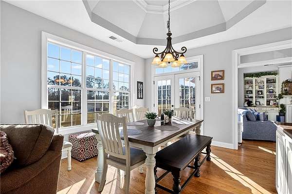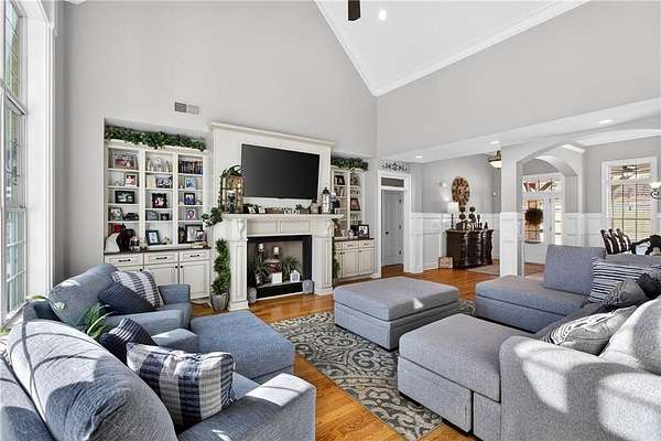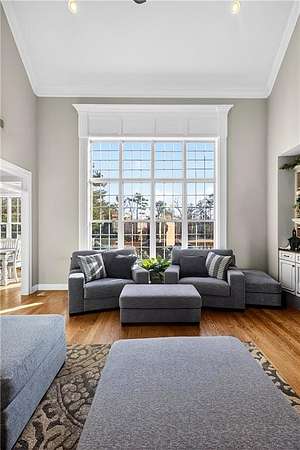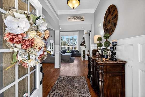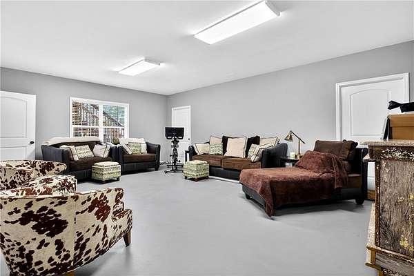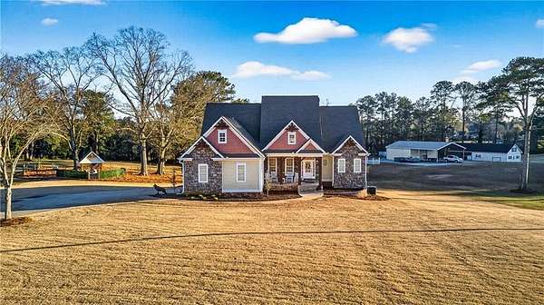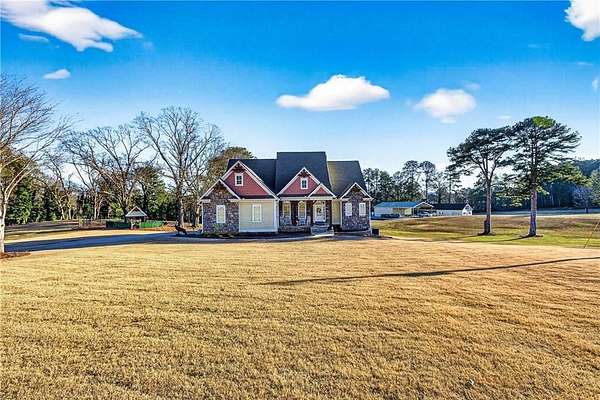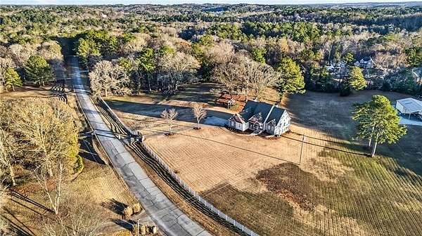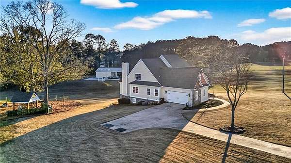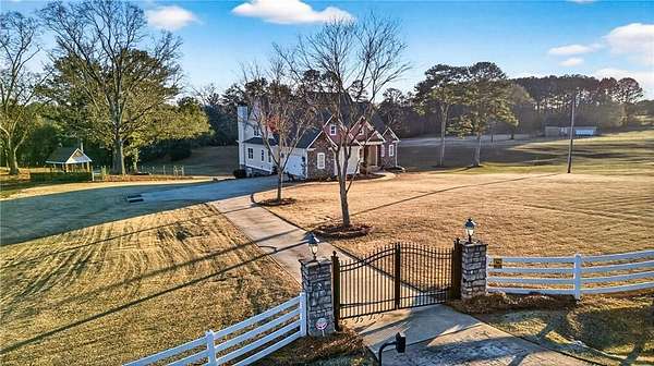 Set behind a private, double-gated entrance on 6.6 fully fenced acres with 800 feet of road frontage, this refined estate offers exceptional privacy, security, and thoughtful design throughout. Offering over 4,300 square feet of beautifully finished living space across multiple levels, including a finished terrace level with additional space for future expansion, the home provides both expansive scale and everyday functionality. With 4 bedrooms and 3.5 baths, the interior is enhanced by custom ceilings, upgraded trim, transom and oversized windows, and 9-foot ceilings on both the main level and terrace level-creating a light-filled, elevated living experience. The chef's kitchen is beautifully appointed with commercial-grade appliances, quartz countertops, and a built-in refrigerator, flowing seamlessly into inviting living spaces anchored by two fireplaces, including a cast-iron fireplace with blower in the keeping room and an oversized fireplace in the family room.An upstairs theater room complete with mini-fridge and microwave, along with the terrace level, offers flexible spaces ideal for entertaining, recreation, or private retreat. Recent upgrades include new double-pane windows (2024), mirror-tinted rear windows (2025), enhanced insulation between HVAC zones, smart keypad entry, camera and security systems, and newly replaced full farm fencing. Outdoors, the property continues to impress with a 40x60 accessory building, freshly poured gravel access, gazebo with water and power, irrigation system, solar-lit fencing, and an owned 1,000-gallon underground propane tank. Furniture negotiable. A rare offering combining elegance, acreage, and exceptional versatility-just minutes from major routes for convenient access to Atlanta.