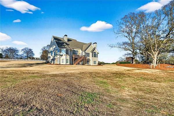 Set behind a private, double-gated entrance on 6.6 fully fenced acres with 800 feet of road frontage, this refined estate offers exceptional privacy, security, and thoughtful design throughout. The home features 4 bedrooms and 3.5 baths, with custom ceilings, upgraded trim, transom and oversized windows, and 9-foot ceilings on both the main level and basement, creating a light-filled, elevated living experience. The chef's kitchen is beautifully appointed with commercial-grade appliances, quartz countertops, and a built-in refrigerator, flowing seamlessly into inviting living spaces highlighted by two fireplaces, including a cast-iron fireplace with blower in the keeping room and an oversized fireplace in the family room. An upstairs theater room with mini-fridge and microwave and a partially finished basement provide flexible spaces for entertaining or relaxation. Recent upgrades include new double-pane windows (2024), mirror-tinted rear windows (2025), enhanced insulation between HVAC zones, smart keypad entry, camera and security systems, and newly replaced full farm fencing. Outdoors, the property continues to impress with a 40x60 accessory building, freshly poured gravel access, gazebo with water and power, irrigation system, solar-lit fencing, and an owned 1,000-gallon underground propane tank. Furniture negotiable. A rare offering combining elegance, acreage, and exceptional versatility-just minutes from major routes for easy access to Atlanta.