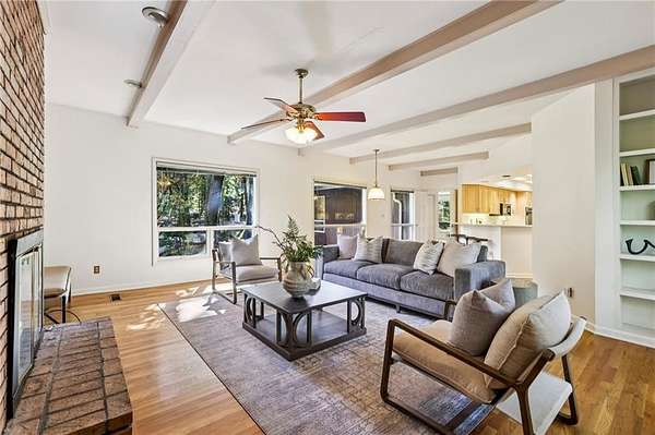 An opportunity exists to either remodel or rebuild a home on a 0.98-acre lot in Sandy Springs. The current home includes two bedrooms and three full baths on the main floor, plus a terrace level with a large rec room, bedroom, full bath, and office, and plenty of storage. The existing mid-century-style home, with its brick and wood exterior and large windows, is a perfect candidate for a deep, modern remodel. Seize a rare opportunity to craft your vision on nearly one acre of lush, private land in one of Sandy Springs' most sought-after locations. The potential for this property is limited only by your imagination, with options to either completely transform the existing residence or build a custom home from the ground up.