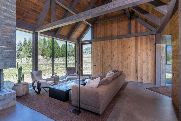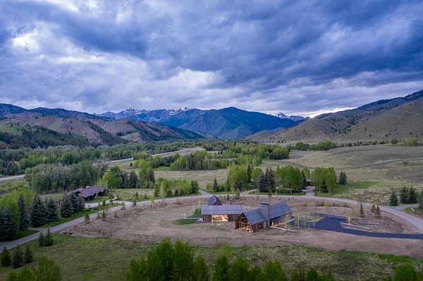 This bespoke dwelling is simple, authentic, and elegantly detailed. Just three miles north of Sun Valley, Idaho, the idyllic Stonegate residence is situated in a rare and highly sought-after location. The home (''Three Barns'') sits at the convergence of four visible mountain ranges located at varying distances, all visible from the site. Nestling into the gently sloping terrain, the home is formed by three gable-roofed structures, connected with steel and glass breezeways. As residents pass through the breezeways, they have a sense of walking through the drifts of meadow grasses as they move from one space to the next. From a distance, the arrangement of the barn-like forms leaves the impression that the buildings have been casually strewn across the site. Upon closer inspection, it appears that the house has settled-in comfortably with the terrain, and the living spaces unfold as a series of precisely choreographed moments where aspects of the surrounding landscapes are brought into focus. The three structures each support an independent, yet connected, element of daily life - one for play, another for daily life, and the third for sanctuary and sleep. They can function as a series of intimate spaces on their own or as a contiguous living environment. This adaptability allows the house to be used for entertainment and larger gatherings, while also retaining a feeling of intimacy for daily use. The design of the house draws its identity from the land - weaving the history and building culture of southern Idaho with a contemporary reinterpretation that distinguishes it as an elevated work of architecture. The physical palette is made up of local materials that have been shaped by time. They require little to no maintenance, while retaining a sense of authenticity and timelessness. Each of the three 'barns" were constructed of a robust heavy timber frame. Reclaimed wood paneling clads the interior, and barn-wood siding from the Camas Prairie is given new life on the exterior walls. Two chimneys constructed of local stone echo the rock outcroppings of the Pioneer and Boulder mountains. Each of the home's ample glass windows and doors are carefully oriented to frame views of the surrounding mountains, bringing the landscape into direct dialogue with the house from near or far. The interior of the home is furnished with a combination of vintage antiques and custom one-of-a-kind pieces, each specifically curated for its exact location. More bedrooms can be added. Please inquire