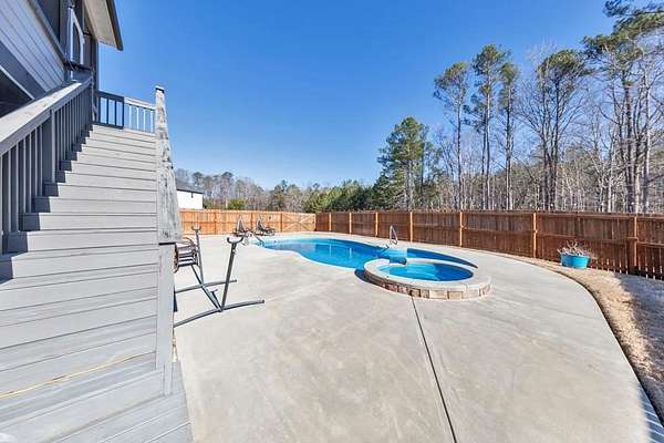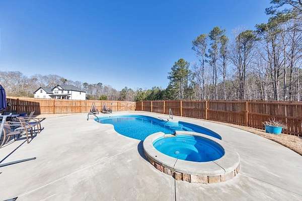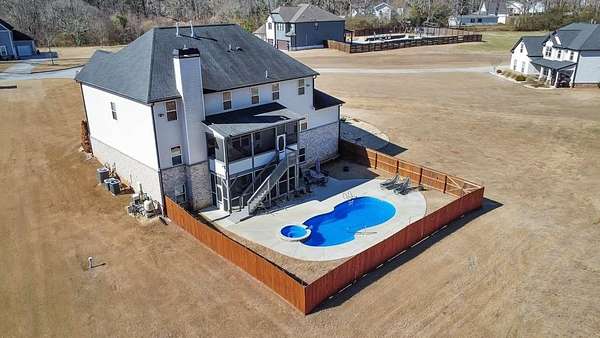 Stunning luxury living awaits in this beautifully designed 7 bedroom / 5 bathroom home built in 2018, perfectly situated on a private 3.2-acre cul-de-sac lot in Flowers Field. Thoughtfully crafted with elegant finishes, expansive living spaces, and exceptional indoor-outdoor amenities, this home offers both refined comfort and incredible functionality. A welcoming covered front porch opens to a grand foyer showcasing hardwood floors, crown molding, recessed lighting, and timeless designer details throughout. A formal sitting room-ideal for a home office-sits opposite the elegant dining room with coffered ceilings. The spacious kitchen is a true centerpiece featuring abundant cabinetry, stone countertops, stainless steel appliances, farmhouse sink, breakfast bar, and sunny breakfast room, all flowing seamlessly into the fireside family room. A main-level bedroom and full bathroom provide flexible space for guests or multigenerational living. Upstairs, the oversized primary suite is a private retreat with tray ceilings, a sitting room, dual custom walk-in closets, and a luxurious ensuite bath with vaulted ceilings, double vanities, soaking tub, and separate shower. The convenient laundry room offers access from both the hallway and the primary suite. Three additional bedrooms complete the upper level-one with a private ensuite and two connected by a Jack-and-Jill bathroom. The fully finished terrace level expands the home dramatically, featuring a large bonus room with a second kitchen, media room, two additional bedrooms, and a full bathroom-all with walk-out access to the backyard. Enjoy resort-style outdoor living with a screened porch, covered patio, fenced backyard, and sparkling in-ground pool with spa-perfect for relaxing or entertaining. A 3-car attached garage and peaceful setting complete the home, while still offering convenient access to Peachtree City, Fayetteville, Trilith, QTS Data Center, the new US Soccer World Headquarters, as well as a plethora of shopping options and exquisite dining experiences. You don't want to miss this one!