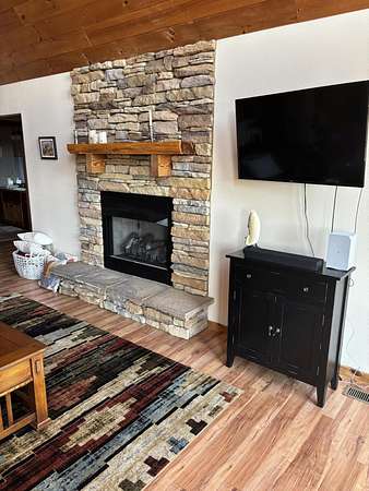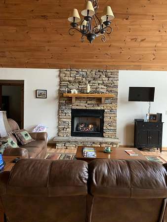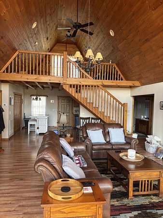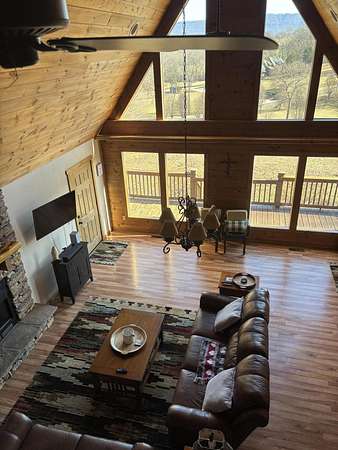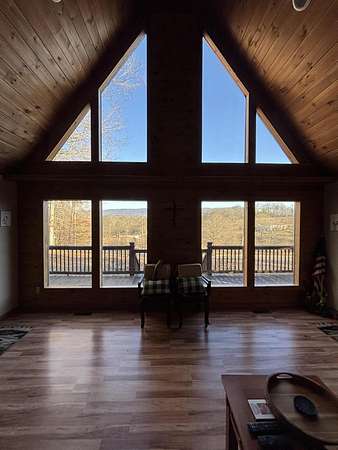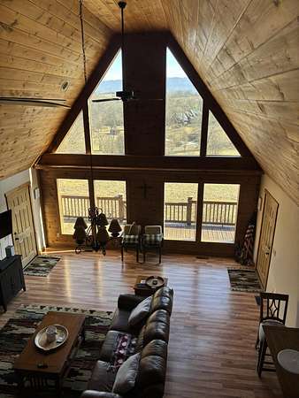 WELCOME TO 110 TERRY LANE! This home is an immaculate move-in ready home with a stunning view. Setting on 2.15 acres wooded on back of house and endless views from the expansive front porch which is covered on both sides. This 3 bedroom, 2 bathroom Aframe has a large primary bedroom with ensuite and walk in closet. Two other bedrooms share a bathroom. An open living area with kitchen and eating area with gas fireplace and loft. The beautiful oversized picture windows on the front of the house bring the outside indoors. Replaced roof 2 years ago with 20 year warranty and HVAC was replaced 2 years ago and has been serviced 2 times a year. Replaced dishwasher and refrigerator in 2025 and garbage disposal 1-7-2026. Installed under house de humidifier in Oct. 2025 with a multi year warranty. Gas fireplace (propane) has been serviced annually. The oversized 2 car garage has room for workshop and has storage above with a winch to lift items up to storage. Also has pull down stairs with a garage door on the side plus the 2 front garage doors. A separate storage shed with entrance on front side. Ring camera can remain at buyers request. Seller will negotiate sale of furniture if buyer is interested. Audio and video recording on the property.