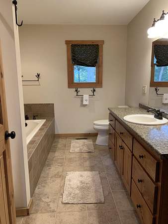 - Bathroom Mirror(s), Cathedral Ceiling(s), Ceiling Fan(s), High Ceilings, High Speed Internet, Laminate Counters, Primary Downstairs, Smart Thermostat, Soaking Tub, Walk-In Closet(s), Walk-In Shower