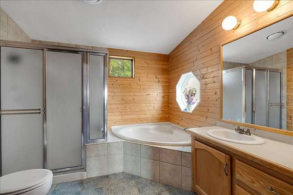 - Fireplace, Main Level Primary, Open Floorplan, Vaulted Ceilings, Walk In Closets