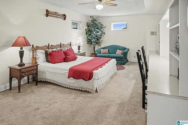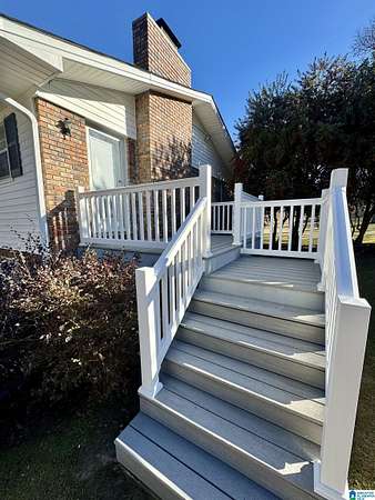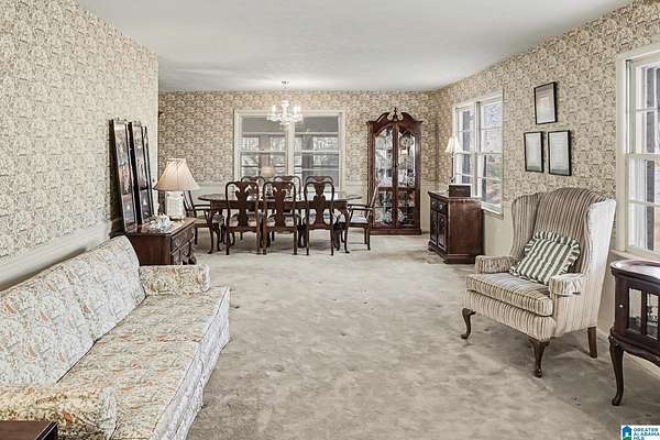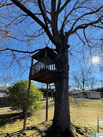Run don't walk, this one-owner full brick estate sits on approximately two wooded acres near Jacksonville State University. A large covered front porch welcomes you into a home rich in character, featuring a foyer with vintage flooring, formal living and dining rooms, and a sun-filled kitchen with island, breakfast area, and adjoining sun porch with private entrance. The main level primary suite includes a walk-in closet, private walk-out, and bath with heated floors, along with two additional bedrooms. The lower level offers a family room with gas-log fireplace, office, laundry, two additional bedrooms, and separate-entrance living space, ideal for guests or extended family. Outdoor amenities include a pool house with half bath, stove, and workshop/garage, a separate 2-bedroom rental home with its own driveway, wooded acreage, and even a treehouse. Additional features include central vacuum and whole-house audio. A rare opportunity combining privacy, luxury, and income potential.