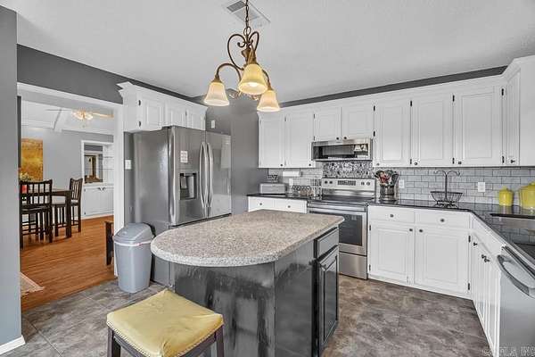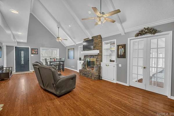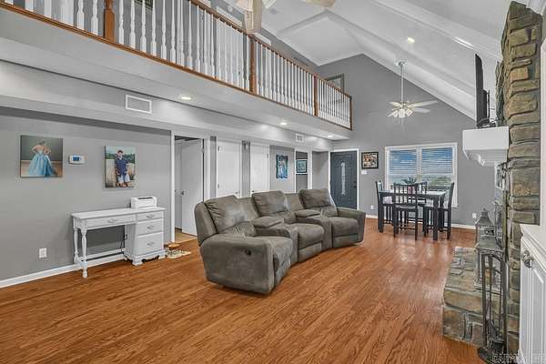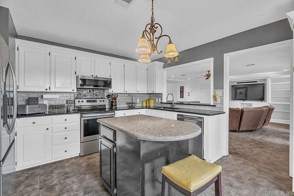 Spacious and well-maintained all-electric home offering 5 bedrooms, 3 bathrooms and 4180 square feet of heated and cooled living space. The living room features vaulted ceilings, beautiful wood floors, and a cozy wood-burning fireplace. The kitchen is equipped with granite countertops, a refrigerator that will convey (only 2 years old), and a range just 3 years old. A large den with built-ins provides additional living and entertaining space. The primary suite is privately situated, offering separation from the other bedrooms. Two bathrooms and one bathroom are located upstairs. Enjoy outdoor living with an in-ground saltwater pool with a pump only 2 years old. The pool house area adds exceptional flexibility with a large living room, kitchenette, two bedrooms and one full bathroom. Additional features include a new room in 2023 and a 19 x 30 metal workshop/storage building with electric. This property offers space, functionality and versatility both inside and out being situated on 2.73 acres inside Morrilton city limits.