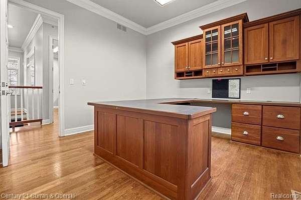 This office building is handi capable. Approx. least 8 parking spots. 1st floor is 1800 sqft. with large Foyer, 6 Offices, 1 bath, kitchen, and lots of storage areas. some offices have built in desks and storage cabinets. Previously used for medical, healthe care, billing, accounting. you have a lot of options to run your company. Tall double pane windows allowing lots of light. extra high ceilings and doors. Entire building has been freshly painted. Ready for new tenant.