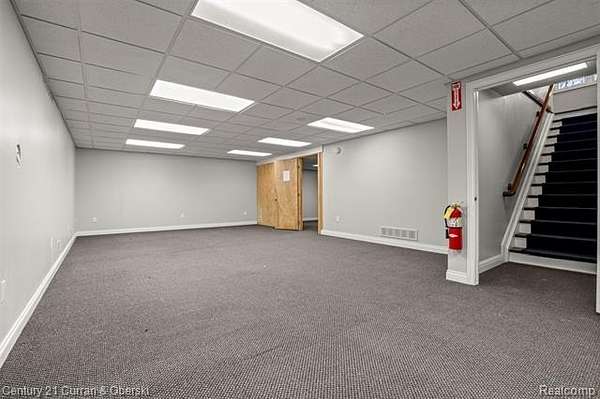 Basement is also 1800 sq ft. Carpeted with 3 additional offices , storage room and sump pump.