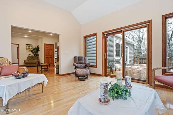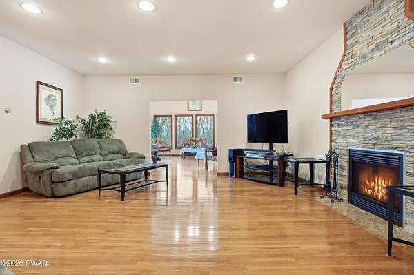 From Rt 590 turn onto Owega Turnpike. Turn left into Hidden Lake Estates. Follow Acacia Drive past lake and make a right on 2nd Dewberry. Home is on the right at the top of the hill marked 1100 at the road.