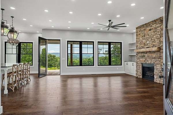 Welcome to your own piece of country paradise! Situated on a sprawling 5 acre tract, this stunning property boasts breath taking panoramic views that stretch as far as the eye can see. With a generous 3100+ sq ft of living space on main level, a 2750 sq ft basement and the 720 sq ft garage, this home offers ample room to live, work, & entertain. On the main level, you'll find 4 spacious bedrooms & 3 luxurious bathrooms, & a 5th bedroom and 4th bathhroom on the bonus level above the garage. The heart of the home is the open concept living area, where 10ft ceilings create an airy atmosphere & argon charged gas black on black windows frame the picturesque views. The kitchen is a chef's dream, equipped with black matte appliances & granite counters. Retreat to the master suite, where you'll find a spa like oasis complete with free standing tub, custom tile shower, his & hers vanities, & a walk-in closet featuring custom cabinets. Taking back-up offers, active contingent w/ kickout clause.