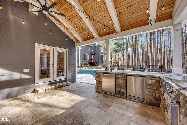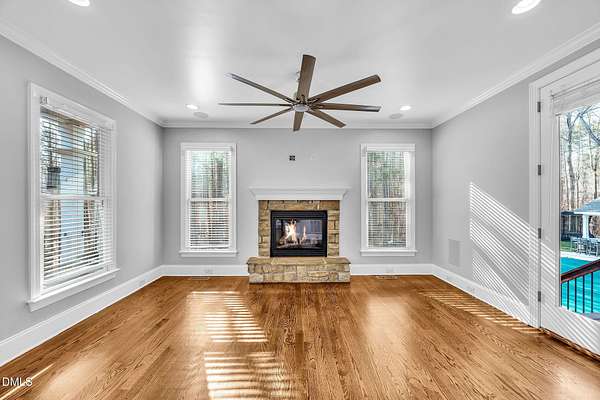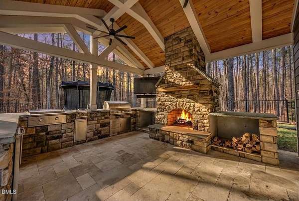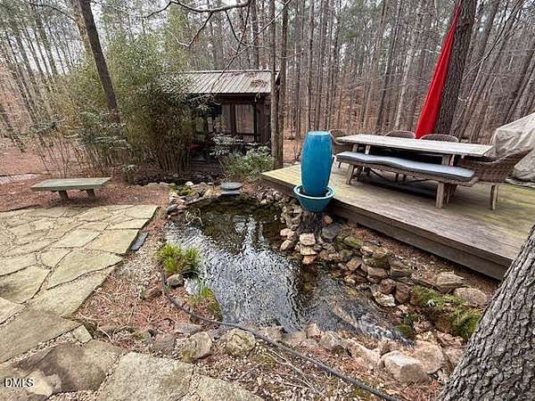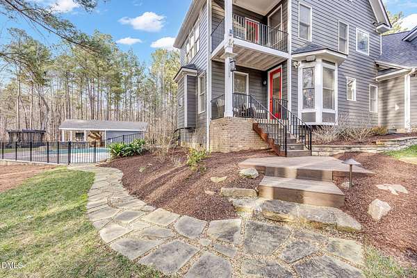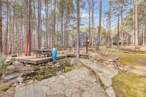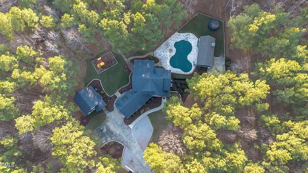 From the moment you arrive, you'll discover that this is not simply a home- it's an entertainer's retreat thoughtfully designed for both grand gatherings and peaceful everyday living. The main residence spans over 4,000 square feet and features fresh paint and brand-new carpet throughout. A first-floor guest suite with full bath provides comfort and convenience for visitors, while the stunning primary retreat upstairs serves as a true sanctuary, complete with its own sitting room, a fireplace, and a private balcony overlooking the sparkling saltwater pool. A hidden office offers the ultimate work-from-home privacy, with two additional bedrooms and an expansive third-floor bonus room providing flexible living and recreation space. At the heart of the home, the chef's kitchen is equipped for culinary excellence and complemented by an oversized walk-in pantry. Perfect for multigenerational living or extended stays, the detached guest cottage lives like a home of its own -- featuring a main-level bedroom, fully equipped kitchen, washer/dryer, its own cozy fireplace, and an impressive upstairs bonus space. But outdoor living really takes center stage in this unique property. Enjoy a beautifully updated inground saltwater pool with new liner and travertine tile, along with a covered outdoor kitchen and entertaining space complete with a masonry wood-burning fireplace , large screen tv, and built-in grill -- ideal for hosting friends and family year-round. Integrated indoor and outdoor sound systems create the perfect ambiance for entertaining, while thoughtfully designed landscape accent lighting highlights the estate's natural beauty after sunset. Wander the private trails past two tranquil koi ponds connected by a winding creek with cascading waterfall features leading to a fully furnished screened retreat with large-screen TV -- the perfect setting for relaxing evenings listening to the soothing sound of the flowing water. A separate pergola seating area offers yet another peaceful escape for reading or enjoying a sunny afternoon in the shade. With multiple fireplaces thoughtfully placed in the formal living room, family room, primary suite, guest cottage, and outdoor entertaining areas, every detail has been curated for warmth, comfort, and timeless elegance. Your dogs will love their very own private dog park complete with an agility obstacle course and bench seating! This elite property is tucked away on over three private, wooded acres just minutes from the charm and conveniences of Wake Forest- without the Wake County taxes! This extraordinary estate offers a rare blend of refined luxury, multigenerational flexibility, and resort-style outdoor living. Schedule a private showing and fall in love today!