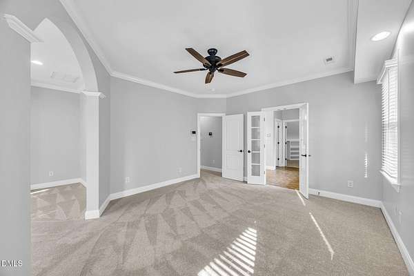 - Bathtub/Shower Combination, Bookcases, Built-In Features, Ceiling Fan(s), Crown Molding, Double Vanity, Eat-In Kitchen, Granite Counters, High Ceilings, Kitchen Island, Pantry, Separate Shower, Soaking Tub, Walk-In Closet(s), Whirlpool Tub