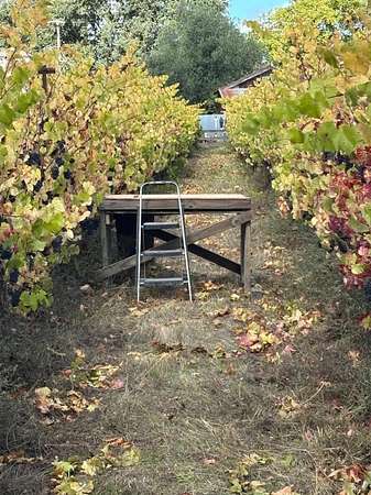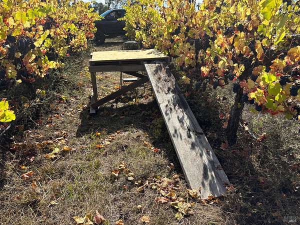 Take River RD heading West, just past Fulton Rd, make a left on Hart Lane, across from the produce market, all the way to the end of Hart Lane-in the vineyards. Three ways to see it. One way is when driving down Hart, it makes a 90 degree turn, but you can go straight into the vineyards, make a left at end of vineyards and proceed to the orange tape that marks the property. Or, go to the end of Hart Lane, by the barn or, just past 1102 Hart Lane is an unlocked gate. Platform to see the views.