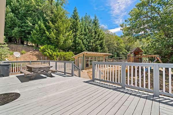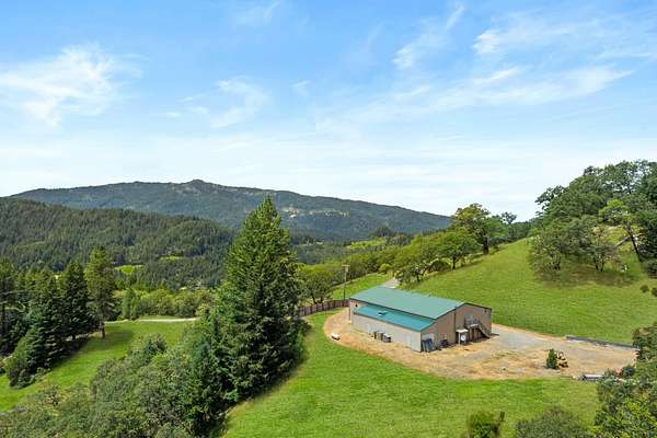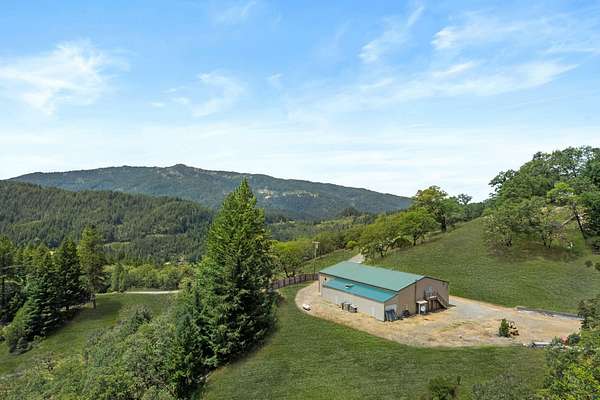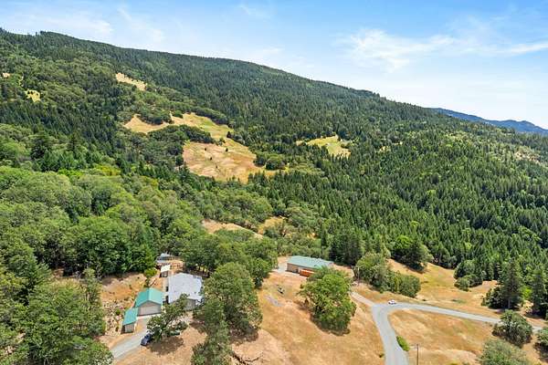 A rare California treasure - 40 acres of pristine land with breathtaking mountain views, endless sky, and privacy, just under one mile off Hwy 36 via paved road. This newly renovated 3BR/2BA estate blends modern design with rustic elegance: wraparound deck, 2-car garage, sheds, and thriving gardens. The 5,000 sq. ft. two-story metal shop features a 1BR apartment, seven versatile rooms, and 400 amps of industrial-grade power backed by a WhisperWatt 220 kVA generator. A place of raw natural beauty and inspiring scale, just minutes from Ruth Lake, crystal-clear swimming holes, rivers, and endless outdoor recreation. Photo's include neighboring land also for sale. Land can be used for your animals, or build a dream home with those big views... or maybe you would pursue the previous cannabis.