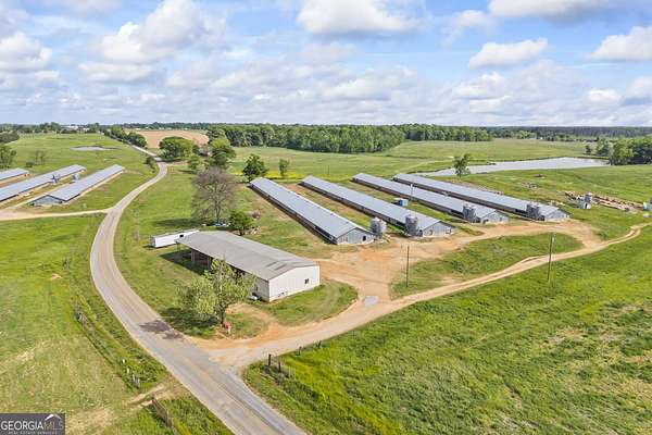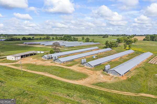 Premier 10-House poultry farm on 290 acres in Hart County. Whether you're a seasoned poultry farmer or ready to step into the business, or want to invest in some of the nicest real estate around, it's all right here. Rare opportunity to own this massive tract of land in the heart of Northeast Georgia. This property has been in the same family for decades and has never been offered for sale. The land is flat, open, and fenced/cross fenced. Ready for all your livestock. The property is zoned A5, Agricultural Intensive, so there's lots and lots of room to expand your poultry operation. And the farm is on natural gas for the poultry houses. There are 10 broiler houses currently in production with Fieldale with an established income. Four of the houses were built in 1990 and six were built in 1994. There's a natural spring that has been a consistent water source for years. Included is a 3Br/2Ba home for you or your helper. Also, a large equipment shed for all your farm equipment and tools. This is a must see property for sure. Contact me today for more information or to schedule your showing. Serious inquiries please. No entrance inside the poultry houses due to Bio-Security.