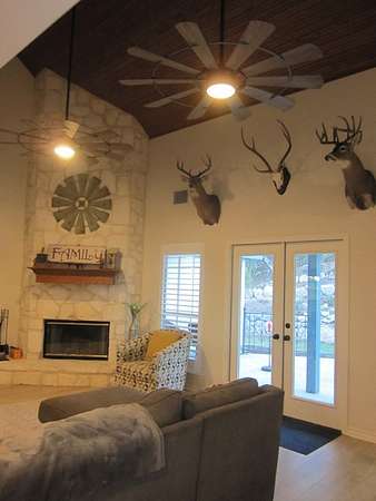 Are you looking for a Forever Home? This is it, country living at its best. This rock home offers 2939 sq ft of living space, 4 bedrooms 3 baths. The first level has 2 bedroom 2 baths with 2 extra rooms for an office space or mancave. Large kitchen with island / eating space with a dining area, walk in pantry and a water softener. The living area is 19x22 with a vaulted wood ceiling. The covered back porch overlooks the water feature of a huge water fall coming down the hill to the home. Upstairs are 2 bedrooms with an open game room or RV room. This home has been completely updated. New roof in 2023, new paint inside and out, new fixtures inside, enlarged walk in shower in master bath with new tile. The entire first floor new tile. New AC unit for the upstairs. This property is under a wildlife management plan for the entire subdivision, hunting is allow, with some restriction on harvesting of large bucks to maintain the native wildlife. Yes you could see Red Stag, Wild Turkeys, Whitetail Deer. Agriculture tax value on the land.