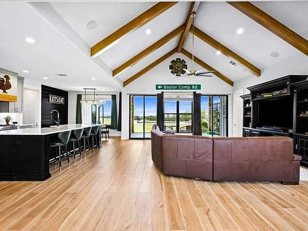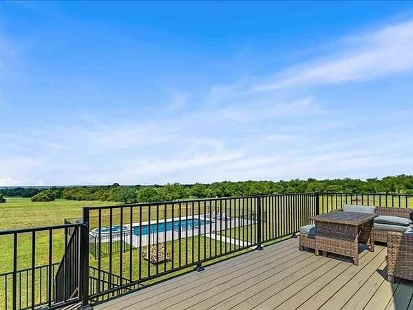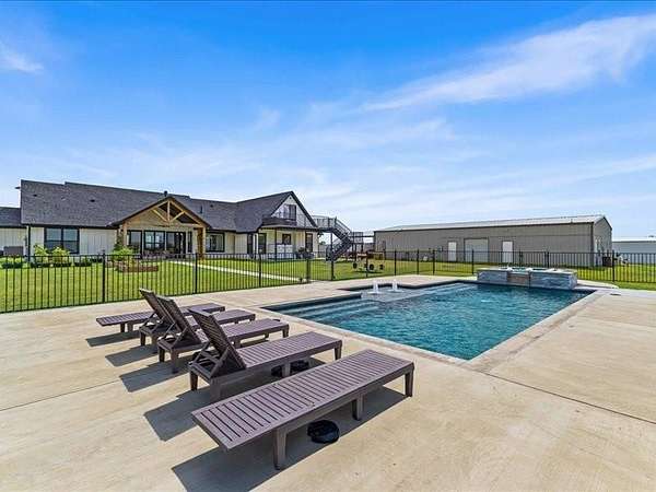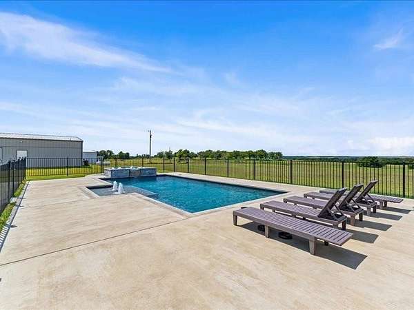 This is the Texas Dream! Modern open concept farmhouse built by JoCo Builders on 7 acres in Lorena. (This is a unicorn in my opinion but you can decide) The main house offers 4 spacious bedrooms, 3.5 bathrooms and 2 large bonus rooms upstairs. The kitchen has over sized, high end appliances and a butler pantry with the most beautiful pocket door. The isolated primary suite has a double-sided fireplace, spa-like bath, and private patio access. Spacious secondary bedrooms include a Hollywood bath with personal vanity areas and a built in bunk bed with rails to maximize floor space. Walk in closets have built in storage; Separated guest hall has plenty of room for your guests to relax and a bathroom with walk-in shower. There is even a special built in area near the laundry room for your best fur babies to relax in their own space made for them. The sellers have utilized every bit of space. Everything is practical and useful but also elegant and timeless. The floor plan was well thought out and and executed to perfection. Bonus rooms upstairs feature a half bath and balcony with the best sweeping sunset views, railing and gated stairs lead down to the pool and garden areas. True backyard oasis with secured pool and hot tub (glow in the dark details).