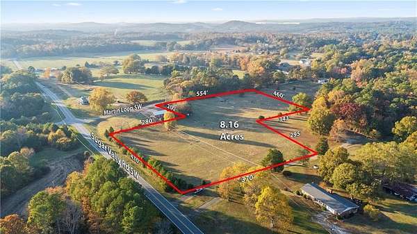 LOCATION, LOCATION, LOCATION! Bring your vision to this 8.16 acre tract in growing Cartersville/Bartow County with frontage on BOTH Sugar Valley Road SW and Martin Loop SW. This beautiful open acreage offers a mix of pasture and mature trees with long road frontage, giving you options for driveway placement, homesite orientation, or future division (subject to county approval). Just minutes to Hwy 411 and convenient to the new battery factory, shopping, dining, and employment centers, this property delivers the country feel with quick access to everyday amenities and major corridors. Create your private estate, mini-farm, or land bank for the future - opportunities like this in such a prime corridor are getting harder to find. Got you. *Property lines shown in photos and aerial images are for illustration purposes only and may not represent an actual survey.*