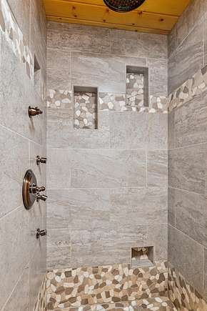 - Breakfast Bar, Built-In Features, Ceiling Fan(s), Dual Flush Toilet(s), High Speed Internet, Kitchen Island, Open Floorplan, Pantry, Primary Downstairs, Shower/Tub Combo, Solid Surface Counters, Tile Shower, Vaulted Ceiling(s), Walk-In Closet(s)