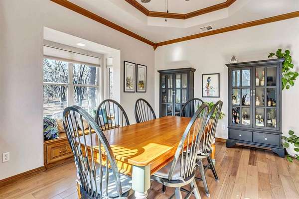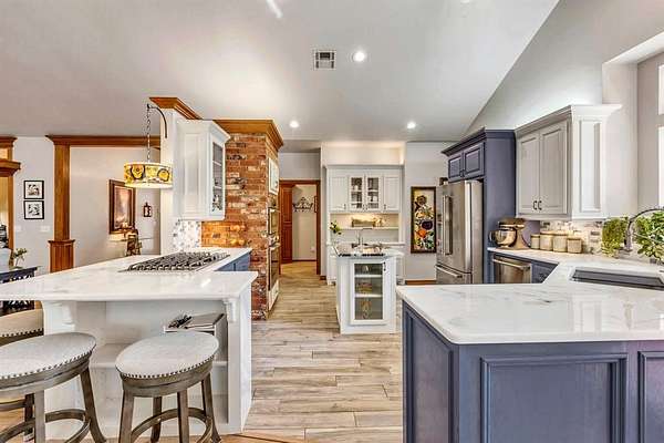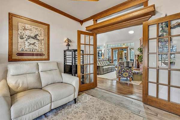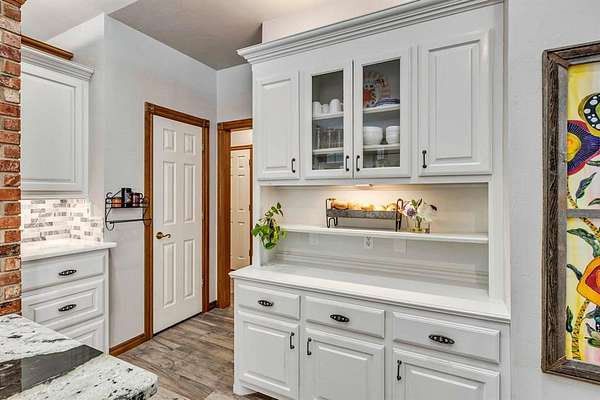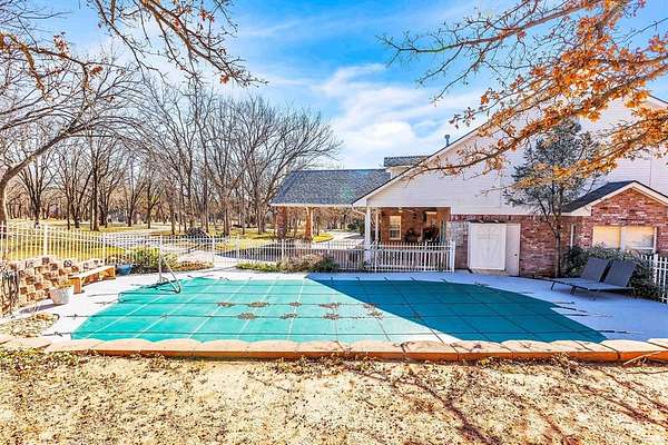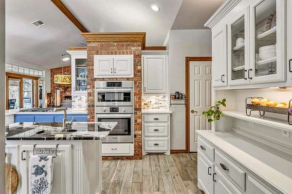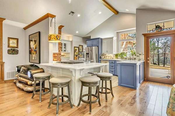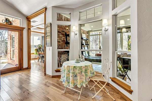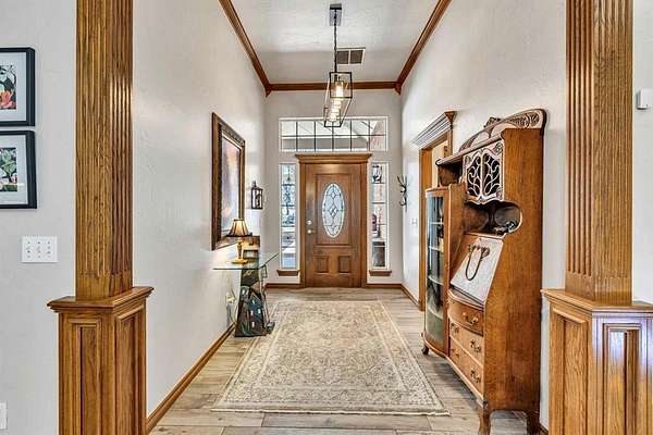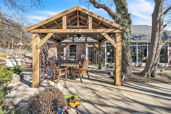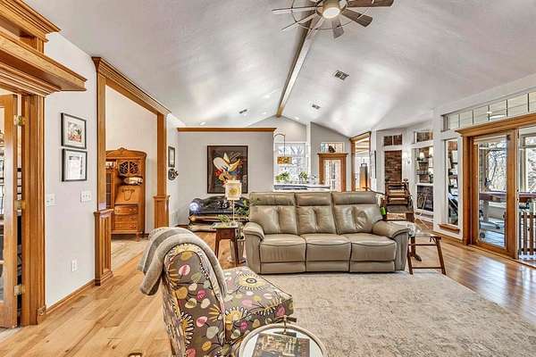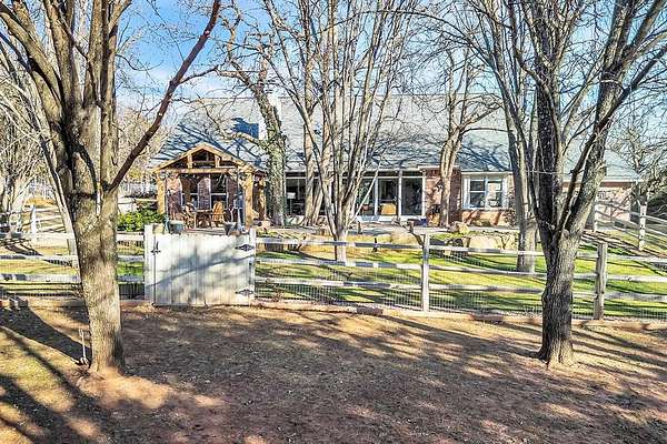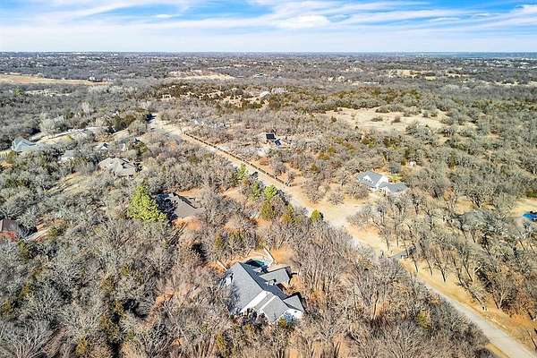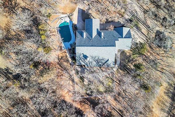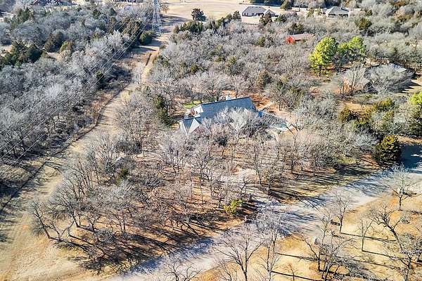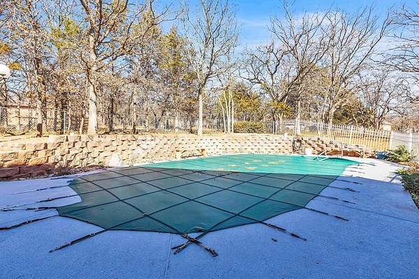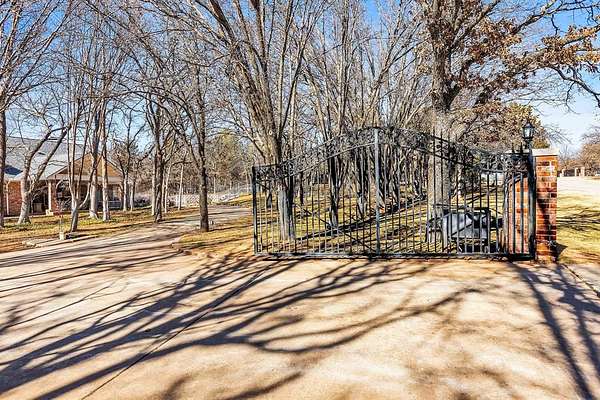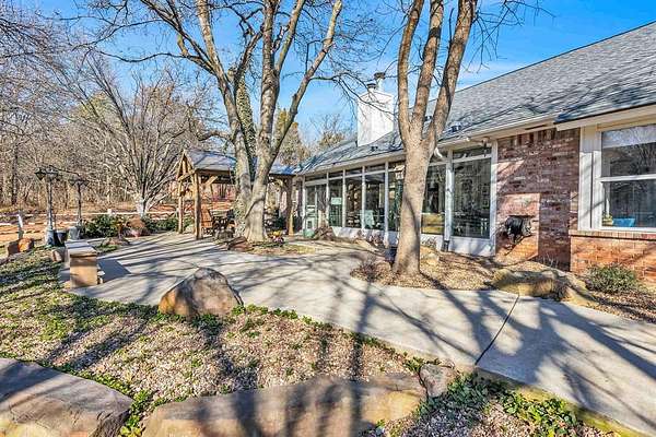 A rare opportunity to enjoy country living within Oklahoma City limits! Tucked behind a gate on a beautiful, wooded 2.5+ acre lot, this exceptional property offers the perfect blend of space, serenity, and convenience-with easy highway access for effortless commuting. Dedicated study or nursery off of the primary suite, 2 full baths, and an extremely comfortable floorplan filled with natural light from expansive windows that frame peaceful, tree-lined views. Rich woodwork, custom built-ins, cathedral ceilings, and abundant storage add warmth, character, and timeless appeal throughout. The updated kitchen is a dream with walk-in appliance pantry and separate food pantry, updated flooring, fixtures, faucets, and a charming window sill-perfect for plant lovers-overlooking the lush backyard. Updates continue throughout the home with new paint inside and out, select new windows, window treatments including plantation shutters, and stylish new lighting. The primary suite is a true retreat, featuring a cathedral ceiling, second fireplace, spa-inspired bath, walk-in closet. The enclosed sunroom is approximately 12' x 33' and offers flexible space currently used as an art studio and additional dining area. Outdoor living truly shines here with large front and back porches, a vinyl-lined heated pool, sprinkler system, enhanced landscaping, pergola, partially fenced yard, and a small pond with waterfall out front. Additional features include two storage sheds, a portico with circular drive, oversized utility room with extra storage, and room to add a shop if desired. Wildlife, mature trees, and a peaceful atmosphere create a retreat feel rarely found this close to the city. Nature-filled, serene, and inviting-this is more than a home, it's a staycation lifestyle. A truly rare Oklahoma City property offering space and accessibility all in one incredible setting.