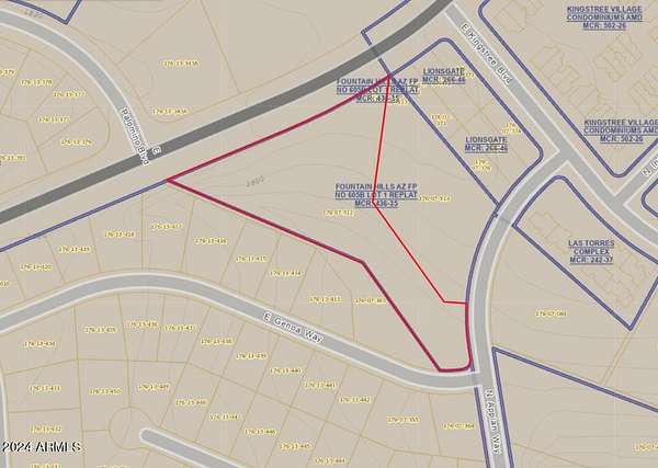 Beautiful 2.6 acre parcel zoned R1-8 with excellent views of Red mountain. Preliminary talks with the city indicate the possibility of splitting the lot into 3 to 5 parcels with a long private drive up to the building sites enjoying Red Mountain views and privacy. Great location with easy access to Shea Blvd and only a couple of miles to downtown Fountain Hills. See documents tab for Aerial, sewer, and contours. ''This property is under the jurisdiction of the NPOA (Neighborhood Property Owners Association). This organization is NOT an HOA and has no monthly fees, but does impose a set of CCR's and other guidelines.'' Survey has been ordered.