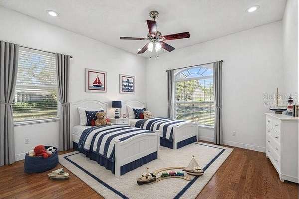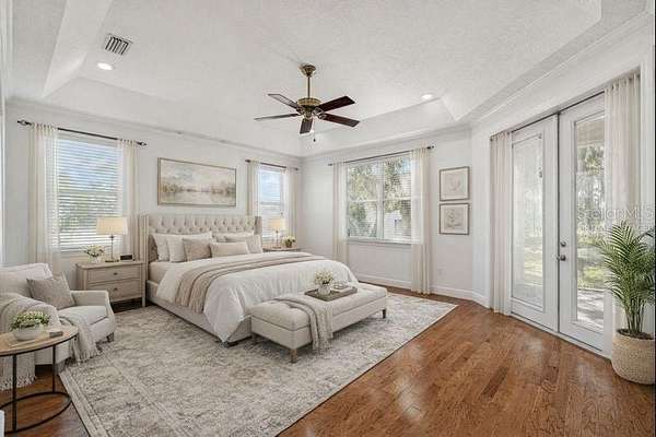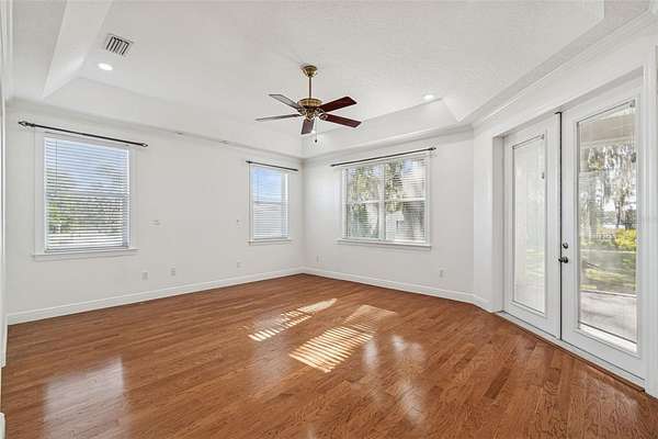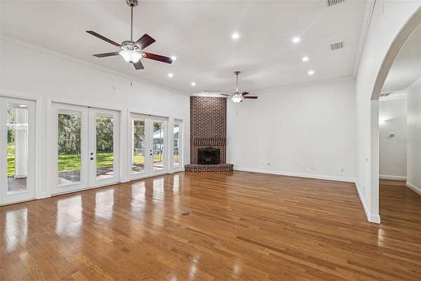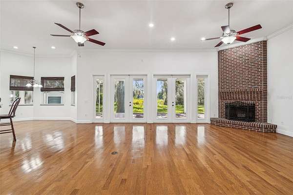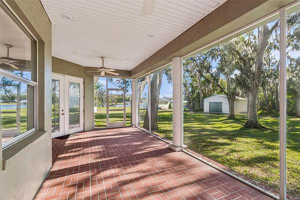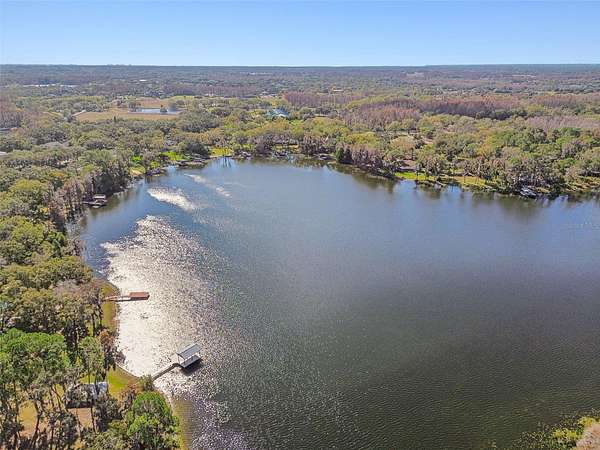 Welcome to THE NEST!!! A single-story lakefront estate set on 2.76 acres on Lake Taylor, where you can boat, ski, and fish to your heart's content. Tucked away at the end of a quiet cul-de-sac, majestic Old Florida oak trees create a peaceful and welcoming setting. A red brick-accented circular driveway, manicured lawn, and full irrigation deliver exceptional curb appeal. Custom built in 2002, this thoughtfully designed ranch-style home offers 3,367 square feet with 4 bedrooms, 2.5 baths, and an oversized 3-car side-entry garage, showcasing pride of ownership throughout. Recent upgrades include a NEW roof (November 2024), freshly painted interior, and a new composite dock deck (2023). Additional improvements feature a 20' x 30' powered garage shed, termite protection, and a water softener and iron filtration system. Inside, double front doors reveal maple hardwood floors, formal living and dining rooms, and an expansive family room with 12-foot ceilings, brick wood-burning fireplace, and French doors framing stunning lake views. The kitchen blends warmth and function with cherry wood cabinetry, granite countertops, newer appliances, breakfast bar seating, and a cafe-style dining area overlooking the water. The private primary suite offers serene lake views, dual vanities, a walk-in shower, and his-and-hers closets, while the split-bedroom layout provides excellent privacy for guests or family. Outdoor living is the true showstopper!!! A screened porch, sprawling backyard, and a boardwalk leading to a composite dock on 44-acre, spring-fed Lake Taylor, ideal for boating, waterskiing, wakeboarding, and fishing. Zoned for top-rated schools including Steinbrenner High School and conveniently located near shopping, dining, and Tampa International Airport, THE NEST delivers privacy, space, and the ultimate Old Florida lakefront lifestyle. (Roof 2024), (A/C 2013).