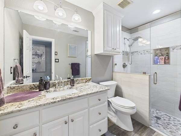 - Attic Fan, Ceiling Fans, Electric Water Heater, Fireplace-Gas/Electric, Master Bedroom Downstairs, Separate Shower, Separate Tub, Smoke Detector, Washer/Dryer Connections