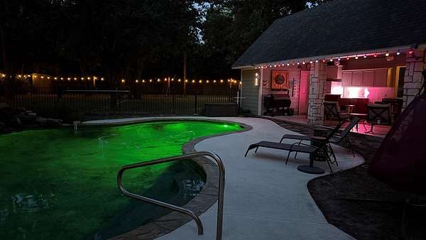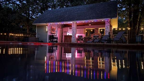 - Covered/Enclosed Patio, Fence, French Drain, Front/Back Porch, Insulated Windows and Doors, Landscaped, Lighting System, Outdoor WBFP, Pool, RV Parking, Sprinkler System, Storage Building