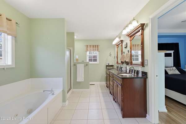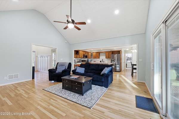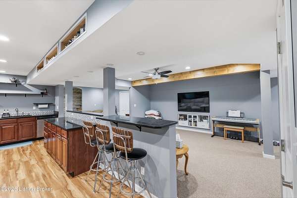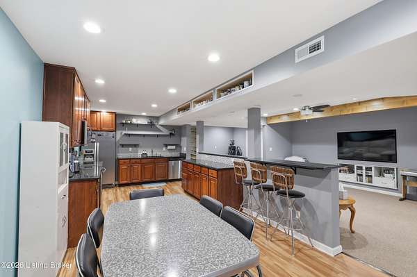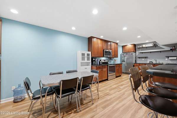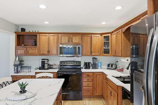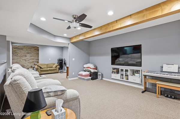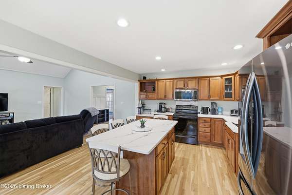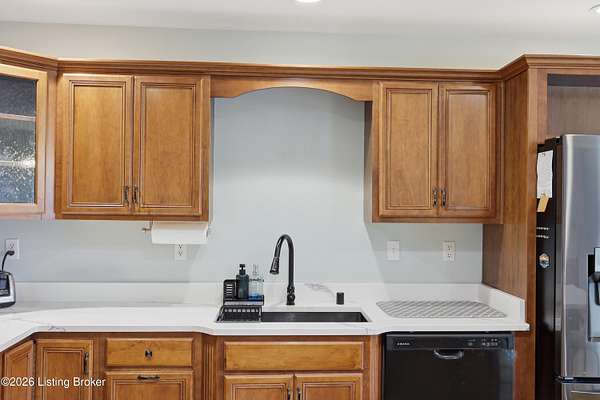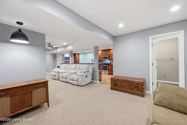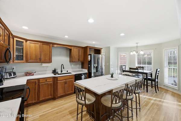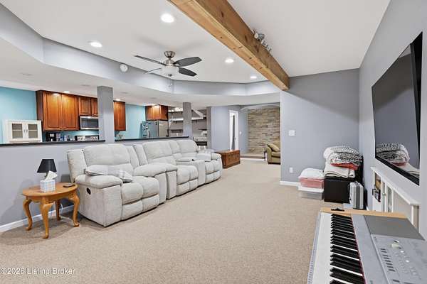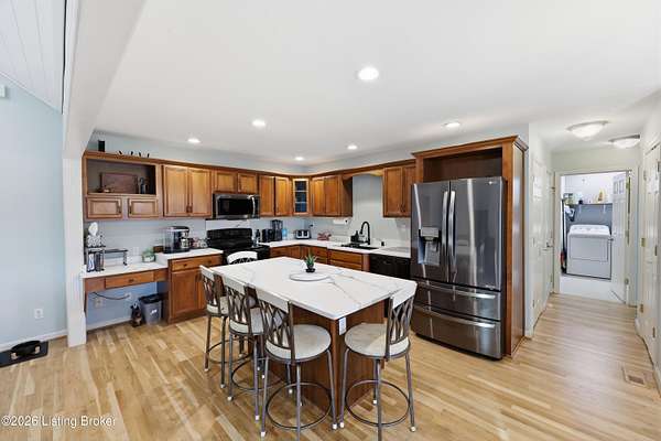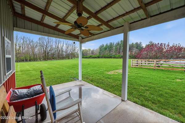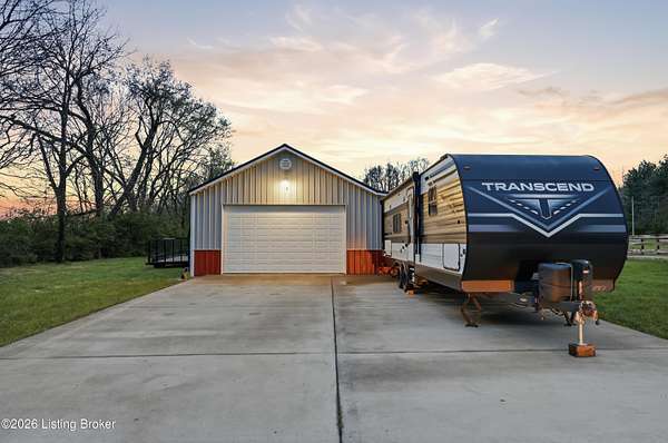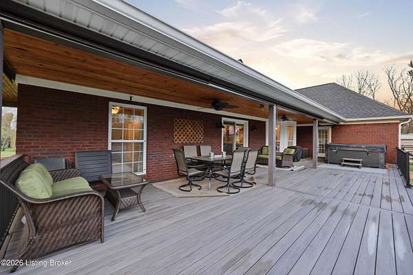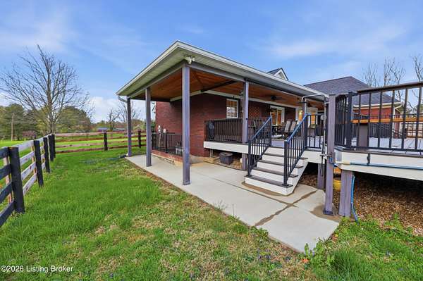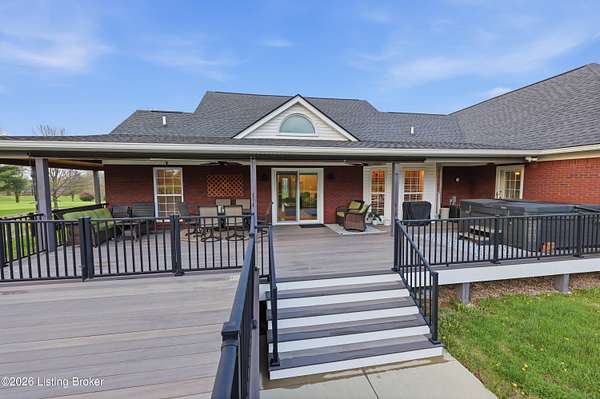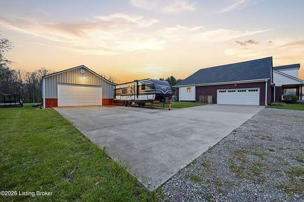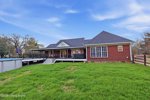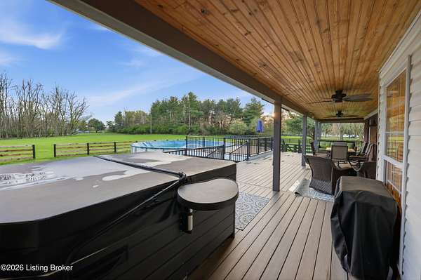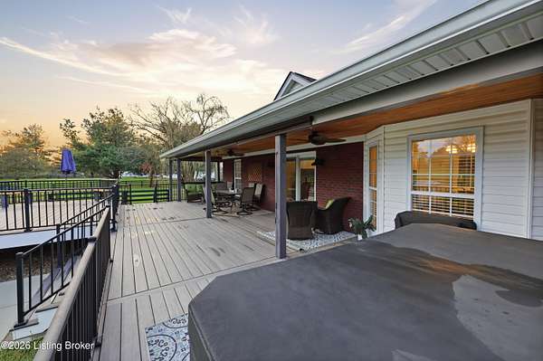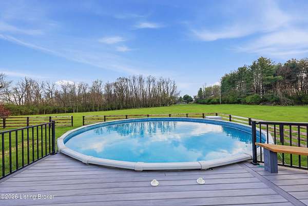 Welcome to 1101 Harrington Mill Road in Shelbyville, KY. Set on over 6 acres in a highly desirable location, this beautifully updated home offers space, privacy, and a layout that works for both everyday living and entertaining. The main level features 3 bedrooms, an additional office space, and 3 full bathrooms, all filled with natural light and highlighted by hardwood flooring throughout. The living room is open and inviting, flowing directly onto a covered synthetic deck that overlooks the pool and private backyard. The deck also includes a hot tub, creating the perfect spot to relax and take in the peaceful setting. The kitchen has been tastefully updated with newer quartz countertops and offers both function and style. The primary suite stands out with tray ceilings, a large bathroom with soaking tub, separate shower, dual vanity, and a walk-in closet. Downstairs, the finished walkout basement adds incredible flexibility. A spacious family room provides a great place to gather, while the full second kitchen features granite countertops, full-size appliances, and plenty of room for seating. This level also includes a full bathroom with a walk-in tile shower and additional storage space with a large walk-in closet, making it ideal for guests, extended living, or entertaining. The home has been very well maintained, with recent updates including a new roof with 50-year shingles and a newer HVAC system. Both the front and back covered porches have been enhanced with warm wood inlay ceilings, adding character and charm to the outdoor spaces. Outside, the property continues to impress. A 40 by 35 detached barn provides excellent space for storage, hobbies, or equipment, with a large concrete pad driveway connecting the home and barn for easy access. Toward the back of the property, you'll find approximately 1.5 acres of mature trees, creating a private setting perfect for campfires, exploring, or simply enjoying the outdoors. 1101 Harrington Mill Road offers the rare combination of updates, acreage, and a prime Shelby County location. Come see everything this property has to offer.