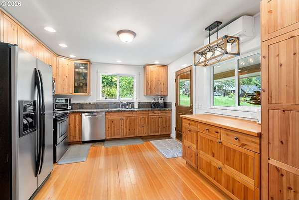 Discover a rare private turnkey homestead where timeless farmhouse character meets refined country living. Thoughtfully remodeled, this 4-bedroom, 2-bath farmhouse offers 2,500+ square feet of warm, authentic living space, highlighted by original old-growth tongue-and-groove floors, abundant natural light, and inviting, beautifully updated interiors.The expansive primary suite offers a peaceful retreat, while flexible secondary bedrooms provide room for guests, office, or creative space. Multiple split systems allow efficient zoned climate control, complemented by a wood-burning furnace for cozy, cost-effective supplemental heat.Set on over 2 fertile acres, the grounds are a true sanctuary. A private spring with established water rights provides an exceptional and valuable independent water source. Enjoy established gardens, mature fruit trees, and prolific blueberries, raspberries, strawberries, and thornless blackberries-creating a farm-to-table lifestyle right outside your door.With space for hobby farming, animals, expanded gardens, or simply enjoying the tranquility of the land, this property offers a rare blend of comfort, productivity, and self-reliant luxury. Peaceful, private, and richly abundant-an exceptional opportunity to own a truly special country estate.