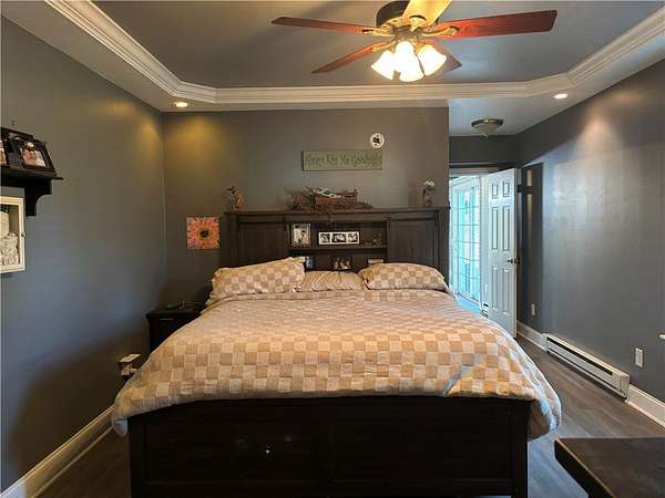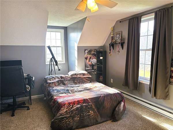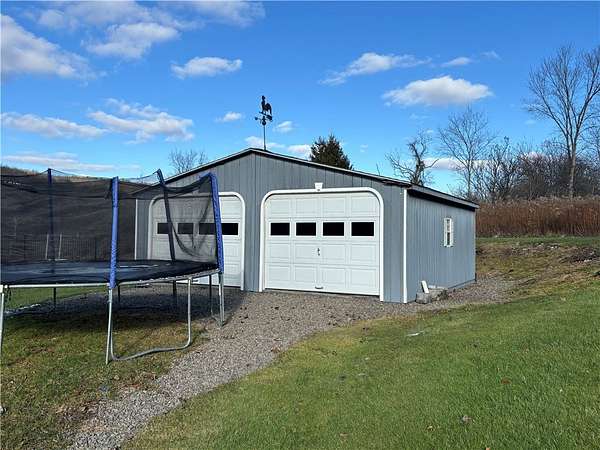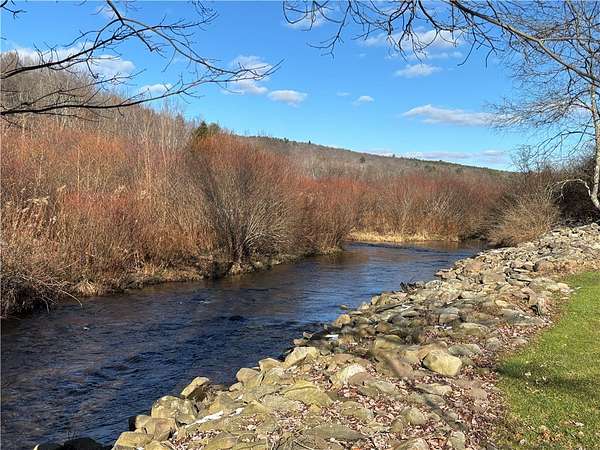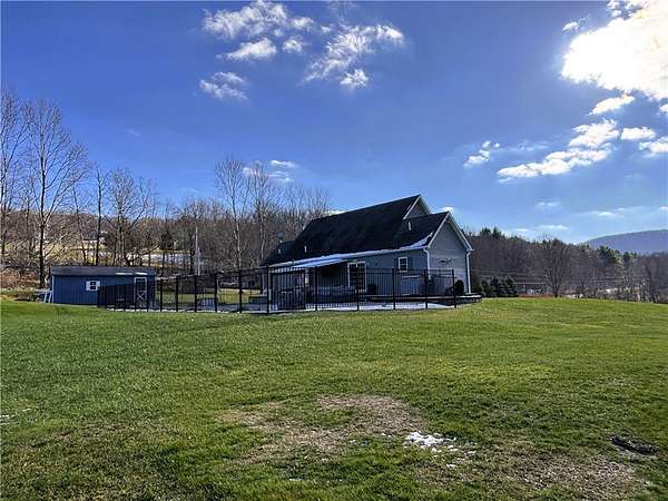 Welcome to this spacious 4-bedroom, 3-bath home set on a beautiful mix of open lawn and wooded acreage with Kortright Creek running through the property. One of the standout features is the heated in-ground pool and hot tub area, perfectly positioned for relaxation and entertaining with mountain views as your backdrop. The gravel driveway leads you into a private, scenic setting with established evergreens and plenty of level yard for recreation. Inside, the home features bright, comfortable living spaces with an open layout. The mudroom entry with built-ins opens into the main living area, dining room, and kitchen. Large windows bring in warm natural light, and a slider with a storm door leads to the backyard. The newly updated kitchen offers exceptional storage with maple shaker cabinetry, brand new granite countertops, matching stainless steel appliances, and an island. The main-level primary suite includes a walk-in closet and a spacious bath with a soaking tub, double sinks, and a 6' shower. Additional main-floor living spaces include a cozy family room with a wood-burning stove and mantel-ideal for lounging or entertaining. Upstairs are two bedrooms, including a bonus room for rec, play, or an office, along with a full bath with shower. The finished basement adds even more living space, including a bar and entertainment area, lounge zones, a gym area, a laundry room with utility sink, and extra closets for lots of storage. Furnishings within the home are negotiable. Outside, enjoy the heated in-ground pool, hot tub, firepit area, and covered veranda, all set against a large open lawn that transitions to wooded areas along the creek. A detached 2-car garage with electric provides excellent workshop, storage, or hobby space. With generous indoor living areas, flexible bedroom layouts, a large finished basement, beautiful land with creek frontage, and excellent outdoor amenities-including that standout pool and spa area-this property offers a versatile and comfortable country lifestyle. It also carries proven potential as an income-producing property, having previously operated as a successful short-term rental.