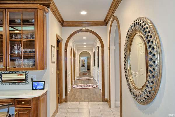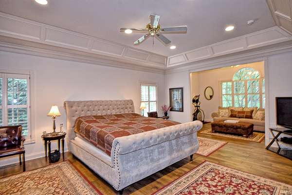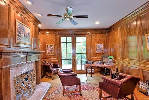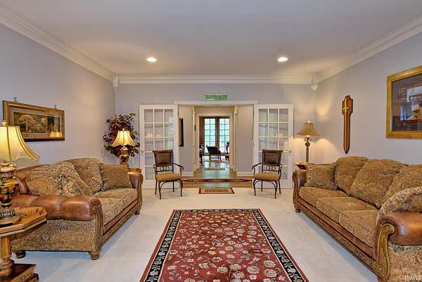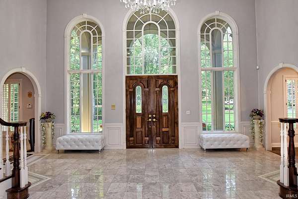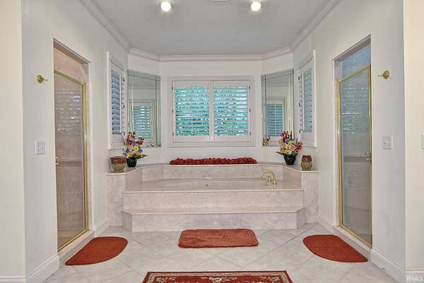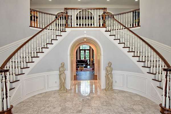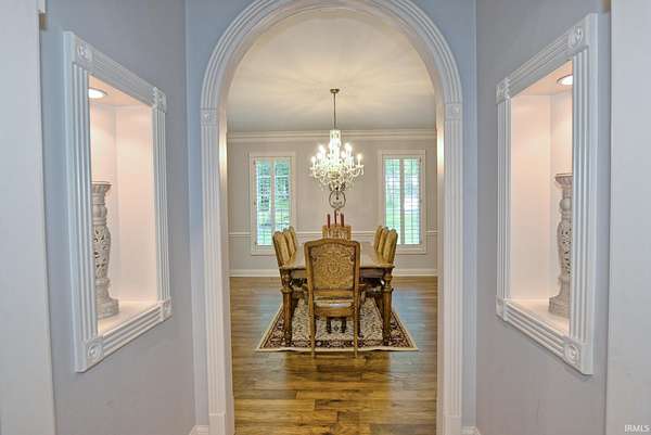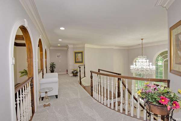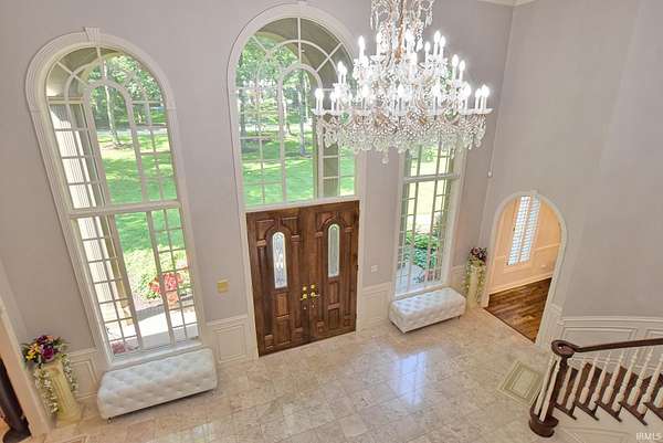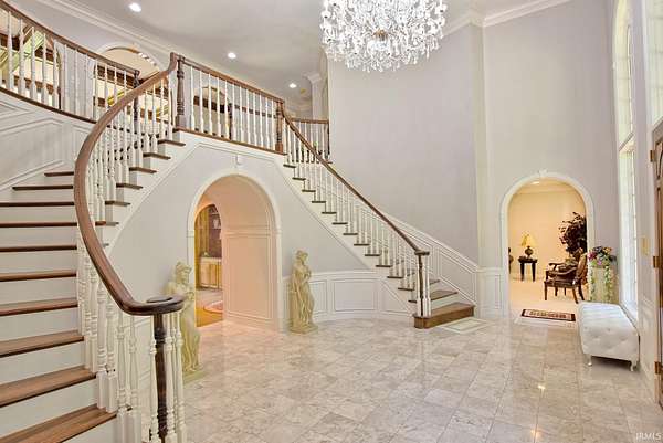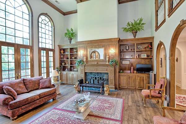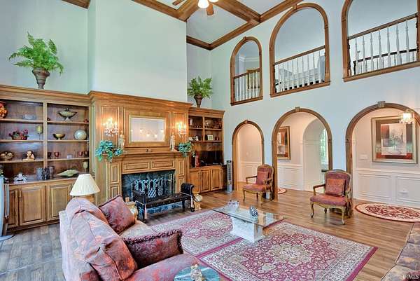 Welcome to this stunning custom home nestled in the serene and picturesque setting of Plantation Estates. Surrounded by mature trees and vibrant landscaping, this residence offers a peaceful, resort-like atmosphere with beautiful views from nearly every room. Designed with family living and entertaining in mind, the home features a grand two-story Foyer adorned with a marble floor, a crystal chandelier, and dual sweeping staircases that set a tone of timeless elegance. The spacious two-story Great Room with a cozy fireplace flows seamlessly into the gourmet Kitchen, complete with a large island, ideal for gatherings. Formal Living and Dining Rooms add sophistication, while a richly paneled Den with fireplace offers a warm, inviting space for work or relaxation. Thoughtfully designed for comfort and functionality, the main level also includes two half baths and an excellent traffic flow that connects each space with ease. The Main floor luxurious Master Suite boasts hardwood floors, a generous sitting area, and an indulgent Master Bath featuring a jetted tub, dual showers, a makeup vanity, and an expansive walk-in closet. Upstairs, Four additional bedrooms, connected by two Jack-and-Jill bathrooms, overlook the Great Room below, creating a feeling of openness and connection. The finished basement extends the living space with a second Family Room with fireplace, a Recreation Room, a full bathroom, and ample storage. With a four-car attached garage, elegant woodwork, detailed ceiling moldings, and a striking front elevation, this home combines craftsmanship with comfort. Located on a quiet, tree-lined street in a safe, friendly neighborhood, and just minutes from shopping and amenities, this property offers spacious indoor and outdoor living in a truly beautiful setting. A seller provided 2-10 Home Warranty for buyer's peace of mind.