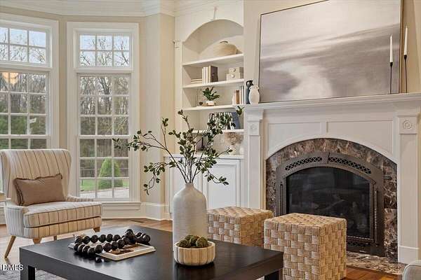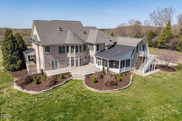 Experience unparalleled elegance in this architect-designed home by renowned builder Dennis Duffy, offering over 6,000 sq. ft. of living space, with an additional 3,000+ sq. ft. ready to finish in the basement and walk-up attic. Exceptional craftsmanship is evident throughout, from soaring ceilings and crown molding to the expansive floor-to-ceiling windows that fill the home with natural light and frame the stunning surrounding views. The gourmet kitchen is a chef's dream, featuring high-end Dacor appliances including a 6-burner stove, double oven, Sub-Zero fridge, granite countertops, and a detailed backsplash. The eat-in kitchen, framed by a bay window, is bathed in natural light. Floor-to-ceiling windows in the living room highlight the views and a cozy fireplace, opening to a spacious screened all-seasons room with another fireplace, stone accent walls, and stone flooring--perfect for year-round entertaining. The luxurious primary suite is a private retreat, with its own fireplace, expansive bathroom featuring a claw-foot tub, oversized walk-in shower, double vanities, and a dedicated beauty vanity with seating. Remote-controlled skylights in both master closets add a unique touch of convenience. Additional bedrooms are generously sized, and the main floor includes a guest bedroom and office. Thoughtful features extend throughout the home, including a two-story entryway with chandelier, two internal flights of stairs, external stairs to the upstairs, and a fenced backyard. The main floor laundry room includes a sink, extra storage, and almost-new washer and dryer. Comfort is ensured with three-zone AC, and peace of mind with a whole-house automatic generator. Connectivity is ready for modern living with a Starlink satellite dish and over-the-air TV antenna. A 2+1 car garage and outdoor patio complete this sophisticated and functional home, all set against serene 10+ acre views.