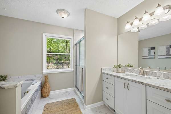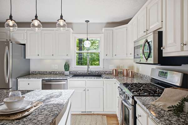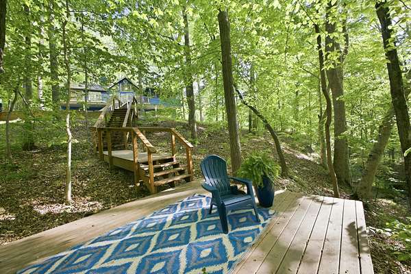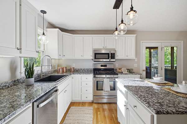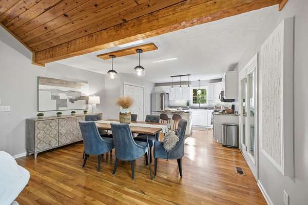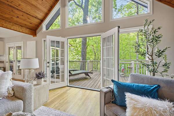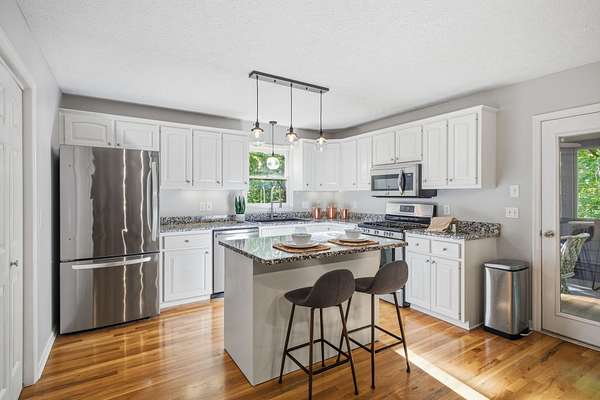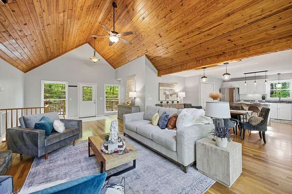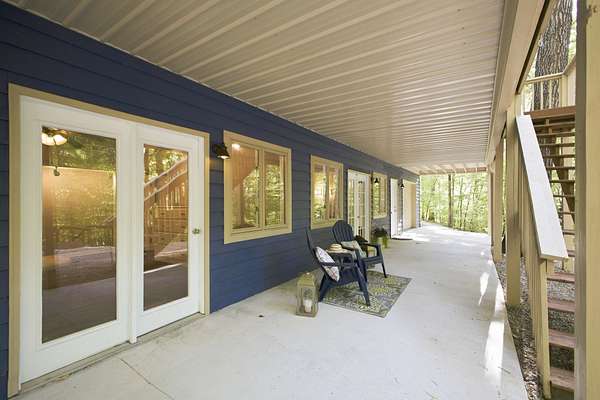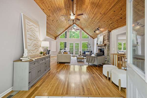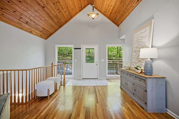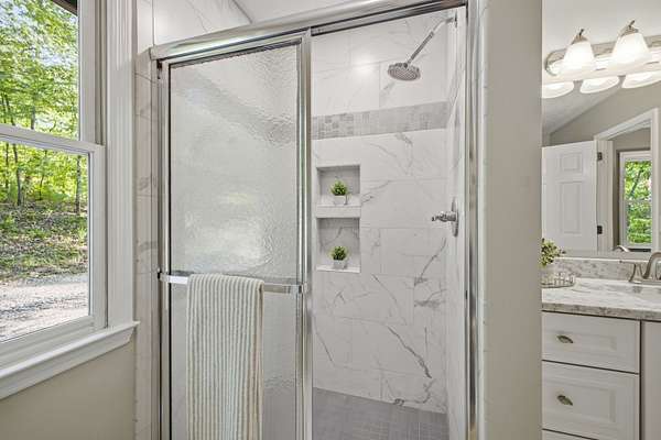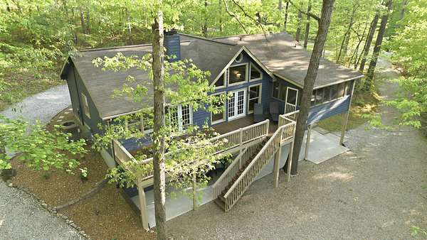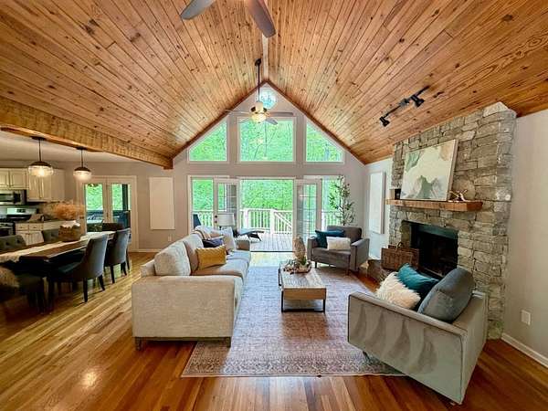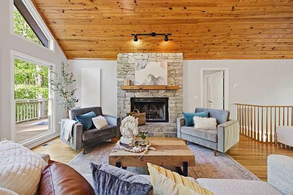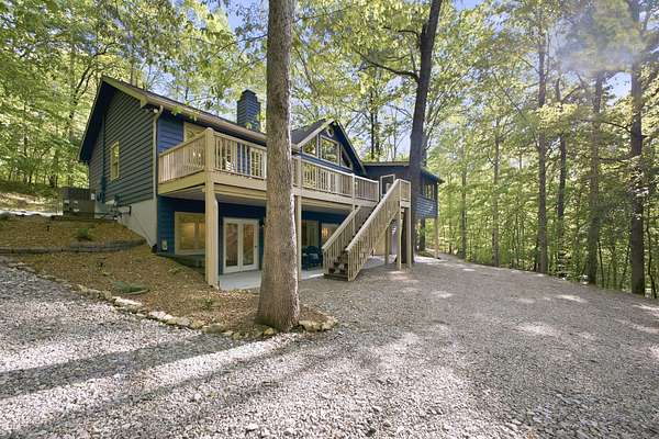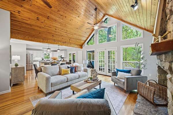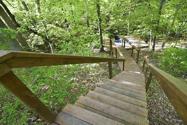 Experience Gatlinburg-inspired charm just outside Nashville! This serene move in ready oasis is situated on a very private 3 acre lot in sought after Kingston Springs! Enjoy breathtaking natural views from your spacious back deck with a screened-in area; and just steps away from your own creek! There is a stairwell that takes you down to an observation deck just above the creek. This truly is an amazing space to watch birds, see the wildlife, maybe catch a small fish, and be in nature! There is also a trail that leads to the creek and a bridge with seating to cross over. If you were to cross over the bridge, take the trail to a private, open space. It's incredible. (also, you may want to wear boots). The interior of the home features vaulted knotty pine ceilings in the living room, walls of windows that flood the space with natural light, and an updated gourmet kitchen with granite countertops, stainless steel appliances and an island that opens to the dining area. The great room has a cozy wood-burning stone fireplace and french doors that exit to the back deck! Feel free to sit in the rocking chairs and take in this serene property. The large primary ensuite has French doors also leading to the back porch and good sized walk-in shower, separate tub and X-Large closet. The secondary bedroom located on the main level has a large walk in closet! The main level also has another full bathroom for guests. PLUS, the home boasts a full finished basement with a private entry (rental potential/teenager hangout), with a large ensuite with massive closet and bathroom consisting of tub/shower combo; and a large den/rec room area. The laundry room is also located downstairs, however, there are w/d hook ups in the kitchen pantry. Once you’re here, you won't want to leave! Please check out the list of updates this home has had since 2021. Located 8 mins to I-40 & is a short 30 minute drive to downtown Nashville/35 minutes to BNA; 45 minutes to Franklin/Cool Springs.