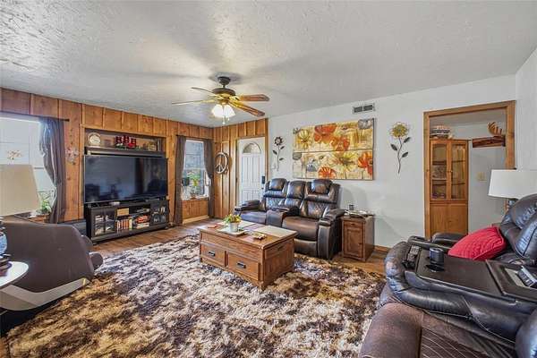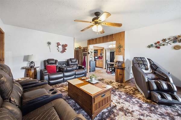 Set on approximately 5 acres, this versatile property offers the ideal blend of space, privacy, and functionality just outside of town. The roughly 2,000 sq ft home features a practical layout with generous living areas, providing a solid foundation to personalize and make your own. A standout feature is the large 30x40 shop-perfect for hobbies, equipment storage, projects, or a home-based business. The open acreage provides ample room for animals, trailers, additional outbuildings, or future improvements, all while maintaining a peaceful country setting. The property offers excellent potential for buyers seeking land and workspace in one package. Furniture may be negotiable, allowing added flexibility for the right offer. Acreage is not surveyed. Buyer to verify boundaries, utilities, and square footage. An excellent opportunity to enjoy space, versatility, and country living with convenience to town.