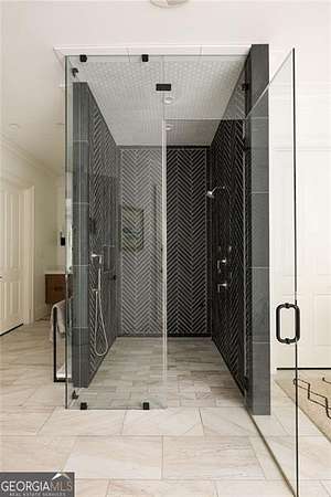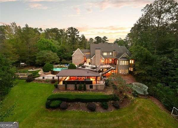 Set on over two acres of lush grounds on Roswell's most prestigious street, 11015 Stroup Road is a masterpiece offering the ultimate in luxury, comfort and privacy. Originally built in 2006 and re-imagined in recent years with a sleek, sophisticated design, this stunning 7 bedroom/11 bath estate will impress the most discerning of buyers. Step inside to an elegant entryway, flanked by an oversized dining room and a cozy library. The open concept leads you to a chef's kitchen with Wolf appliances, two full sized side-by-side Subzero refrigerator/freezers, two dishwashers, custom cabinetry and an oversized quartzite waterfall island, with views of both the fireside family room with vaulted ceiling, and an inviting living room. The primary suite on the main level is a serene retreat featuring soaring ceilings, a sitting area, dual custom closets, his/hers water closets, a soaking tub, and a large steam shower. Tailored to accommodate every lifestyle, the upper level has 5 spacious bedrooms, each boasting an en suite bathroom, as well as multiple flex spaces. The finished terrace level is a haven for entertaining and recreation, with an 8-person movie theater and 130' screen, kitchenette/bar, 850+ bottle wine cellar, office, and a state of the art gym, complete with spring subfloor system, sauna, and a steam shower. Stepping outside, the large screened in porch with wood burning fireplace offers the perfect spot for morning coffee. The ultra-private outdoor oasis continues with a massive deck with fire pit and multiple seating areas, an outdoor kitchen outfitted with an Earthstone 90 pizza oven, Infratech heating, sink, and Kalamazoo appliances - BBQ, burners, warming oven, refrigeration and storage - and a heated saltwater infinity pool and spa. Many additional conveniences abound: whole house generator, tankless water heaters, and a whole house water filtration system. A true retreat, tucked away from the hustle and bustle, in an ideal location minutes to Mountain Park elementary, Blessed Trinity, Queen of Angels, Fellowship Christian, Roswell High School, Historic Downtown Roswell, and several local parks.