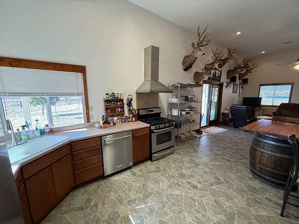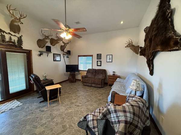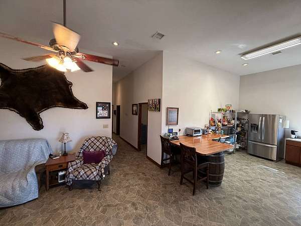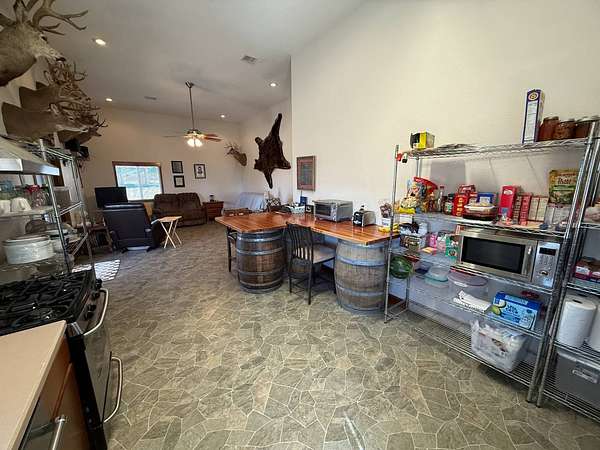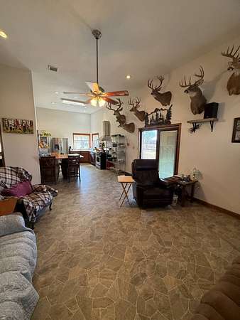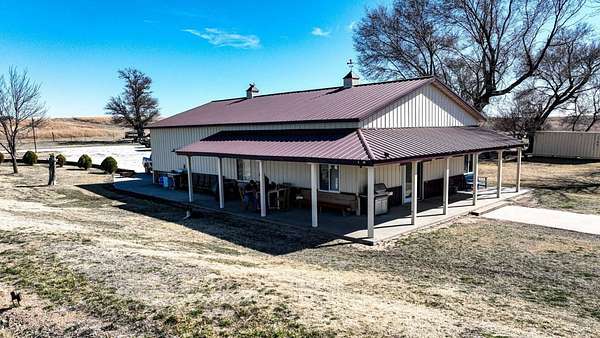 Located in Pratt County, this 45± acre recreational and residential property offers an outstanding combination of country living, hunting, and outdoor recreation. The property features a 2 bedroom, 1 bathroom barndominium with approximately 1,152 sq. ft. of living space, making it ideal as a full-time residence, weekend getaway, or perfect hunting camp or lodge. The home includes heated concrete and vinyl flooring, central heat and air, and a loft that adds additional functional space. Stainless steel appliances are included in the sale, featuring a built-in dishwasher, refrigerator, and propane cook stove with a wall-mounted vented hood. A stocked pond provides excellent fishing and scenic views, while water wells supply dependable water for the home and property. Approximately 10 acres of productive tillable ground provide potential for farming or additional food plots. In addition, the property includes a 1-acre established food plot on the east end, helping attract and hold deer on the property. The remaining acreage consists of tall native grass that has not been grazed, creating exceptional bedding cover and habitat for whitetail deer and upland game. The property is set up and ready to hunt, featuring two hunting blinds and mowed trails throughout the property for easy access by ATV, UTV, or on foot. Several outbuildings add practical storage and workspace for equipment and outdoor gear, including a 50' x 25' metal storage building, a smaller metal storage shed, insulated garden shed, farm utility storage shed, and an RV carport. The land is surrounded by excellent exterior fencing, adding value for livestock or land management. Access is convenient via a well-maintained county road, ensuring reliable year-round entry. The property also includes a salt water disposal site and mineral rights owned by the seller will transfer to the buyer, adding potential long-term value. Key Features: 45± Acres, 2 Bed / 1 Bath Barndominium - 1,152 sq. ft., Heated concrete and vinyl flooring, Stocked fishing pond, 10± acres of tillable ground, Established food plot & native grass habitat, Hunting with blinds and trail system, 50' x 25' metal storage building + additional outbuildings, RV carport and equipment storage, Mineral rights owned by seller will transfer to buyer. This property offers a rare opportunity to own a turn-key Kansas hunting property with a home, established wildlife habitat, fishing, and recreational improvements already in place. Contact listing agent to schedule a tour!