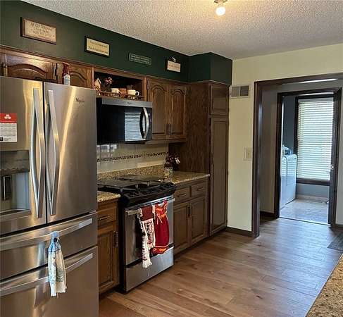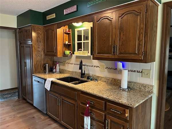 This ranch-style home is situated on a spacious lot. The living room features a cozy fireplace, and the kitchen is equipped with brand-new stainless steel appliances, which will remain with the property, along with beautiful granite countertops. The main level includes three bedrooms, two full bathrooms, a half bathroom, and a laundry area. The finished lower level also has an additional half bathroom. Outside, you'll find a detached garage that includes a half bathroom, three extra bays, and an upstairs storage area. All information to be verified by buyer/buyers agent.